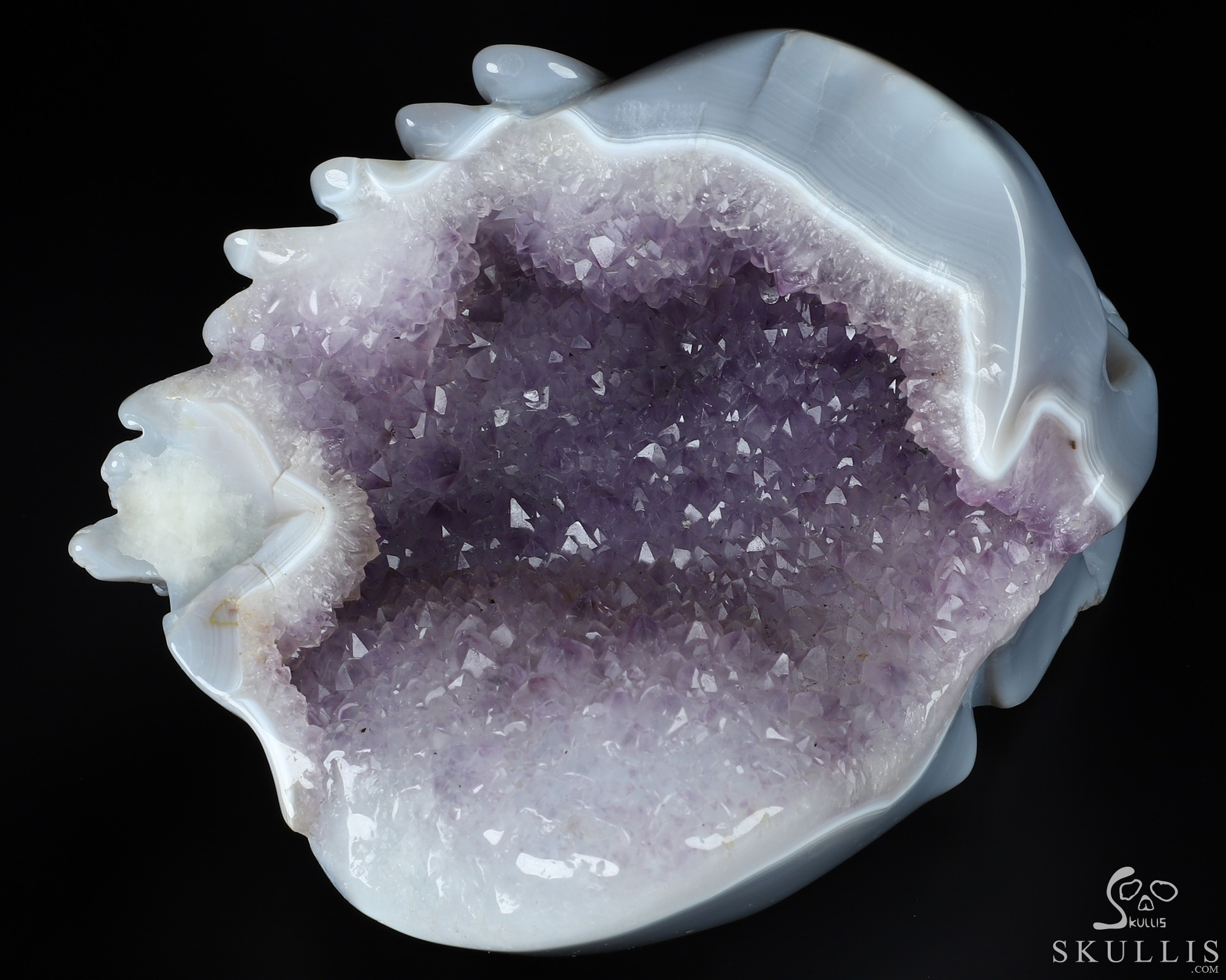 Lifesized 6.5" Agate Amethyst Geode Hand Carved Crystal Skull, Super Realistic, Crystal Healing