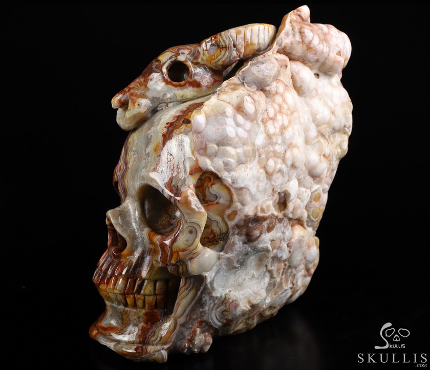 7.1" Red Crazy Lace Agate Carved Crystal Skull & OX Crystal Healing