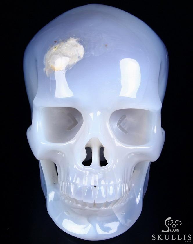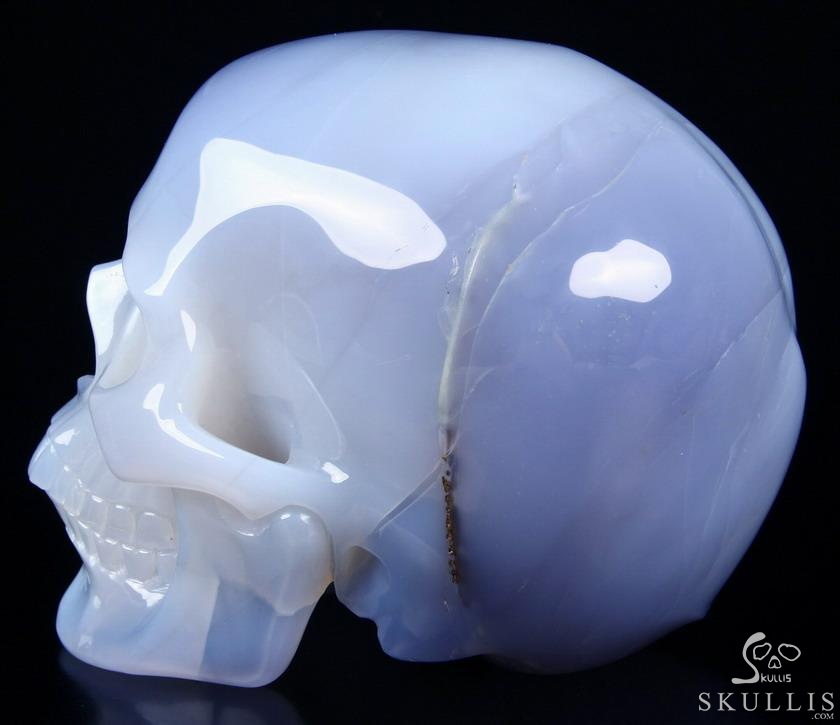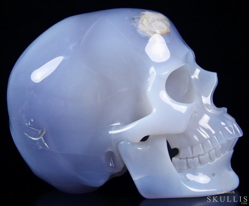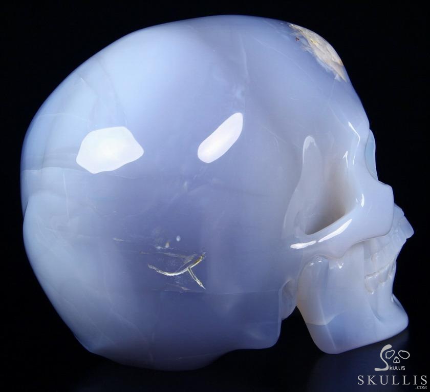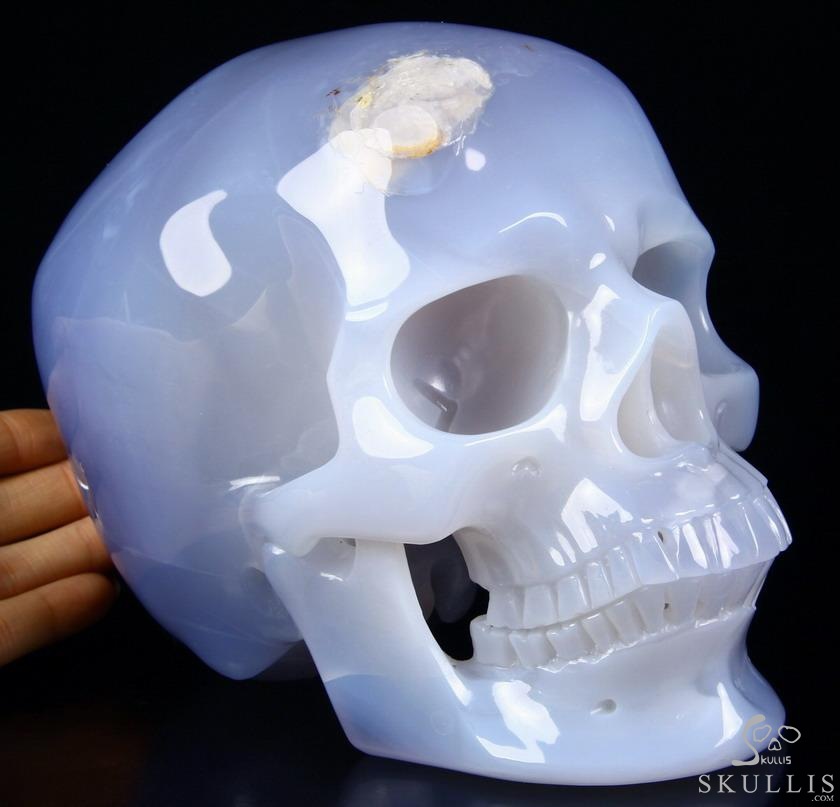 Huge 7.0" Blue Chalcedony Carved Crystal Skull Inside Sculpture, Crystal Healing