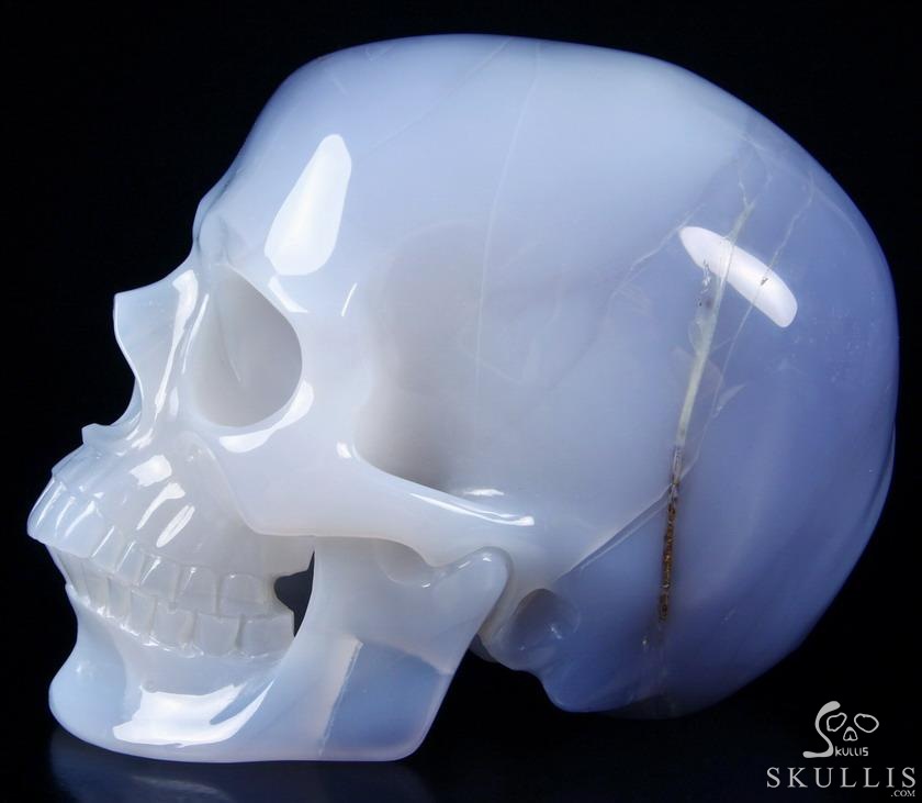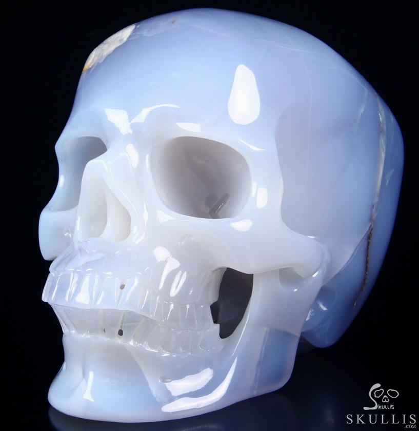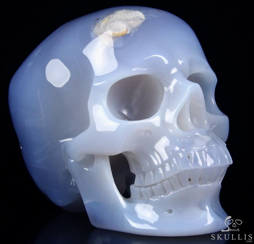 3.8" Blue Chalcedony Hand Carved Crystal Skull, Super Realistic, Crystal Healing