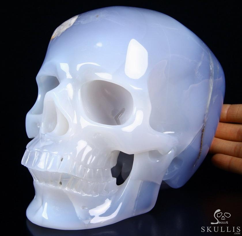7.3" Blue Chalcedony Carved Crystal Skull,Super Realistic, Crystal Healing