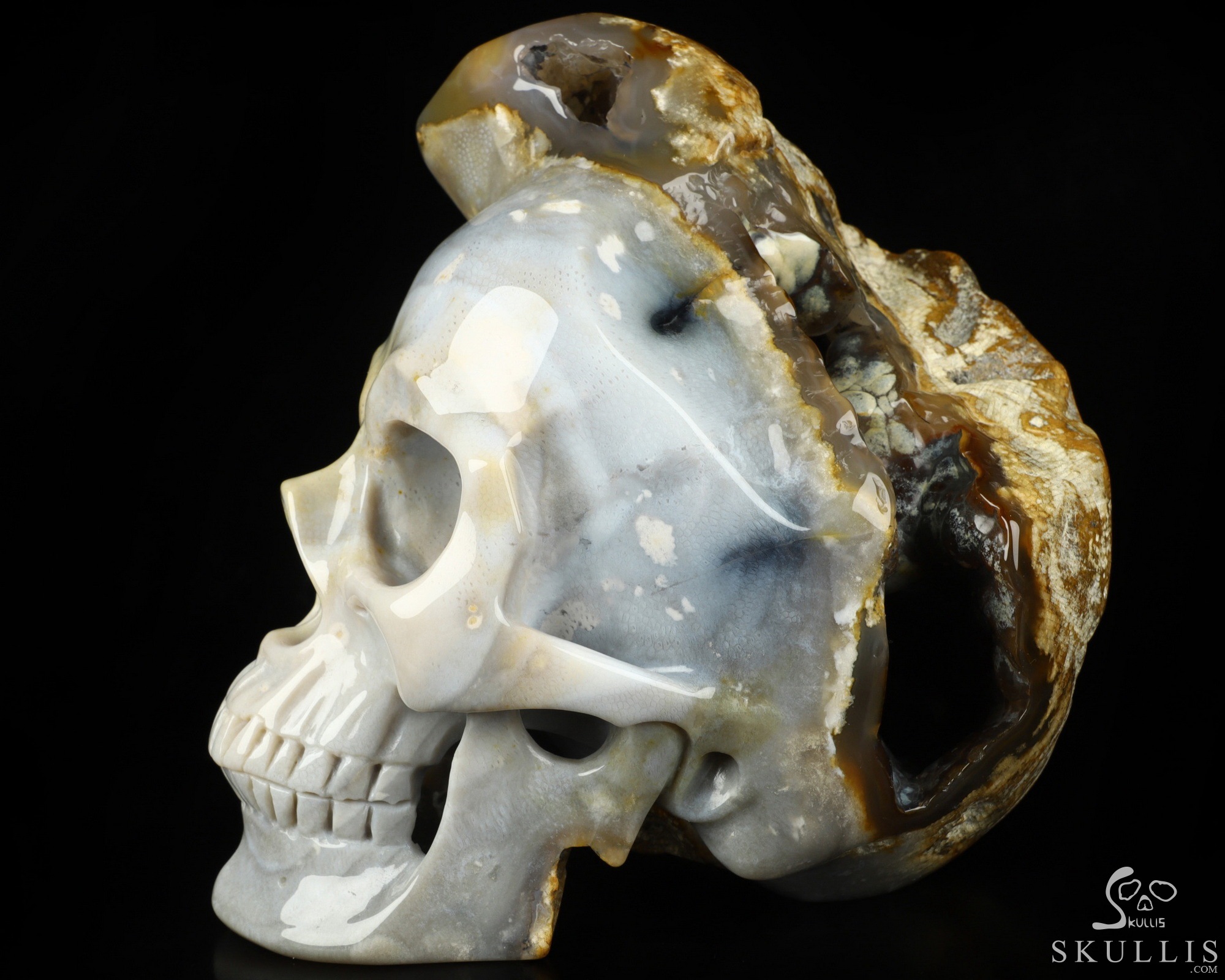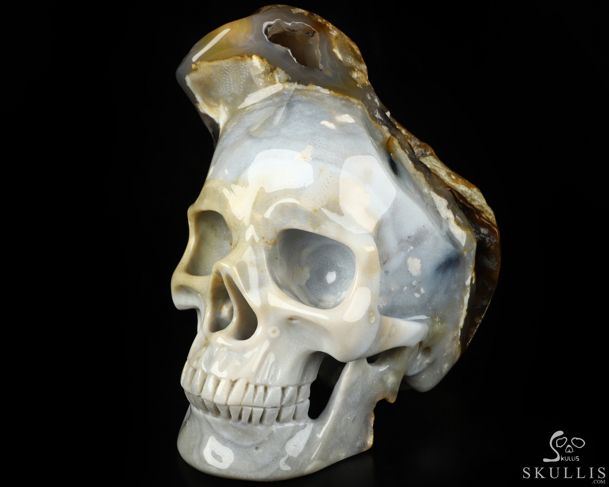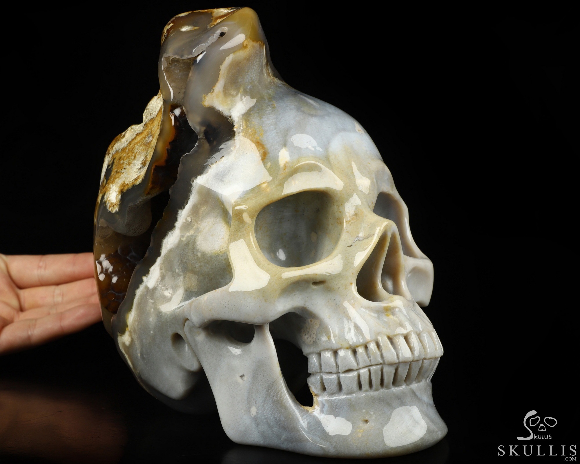 7.3" Coral Fossil Hand Carved Crystal Skull Fine Art Sculpture, Crystal Healing