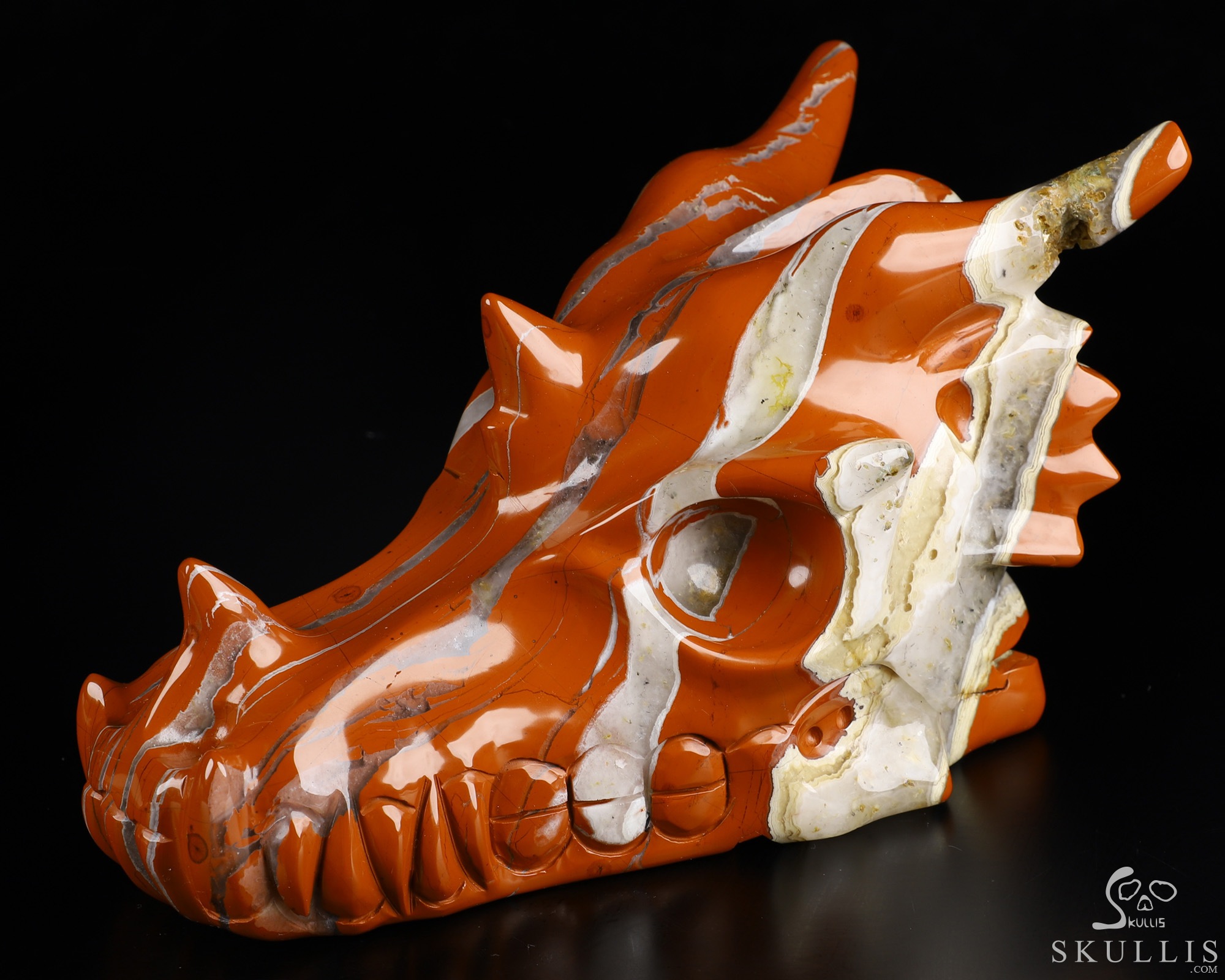7.3" Red Jasper Hand Carved Crystal Dragon Skull Sculpture, Crystal Healing