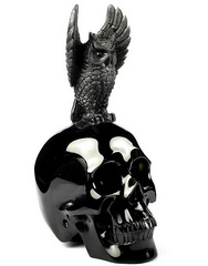 6.9" Black Obsidian Hand Carved Viking Crystal Skull Fine Art Sculpture, Crystal Healing