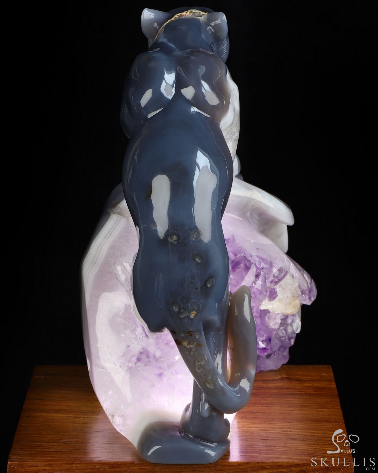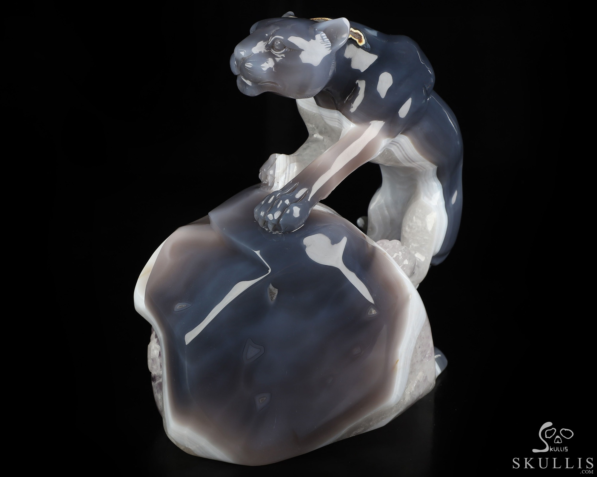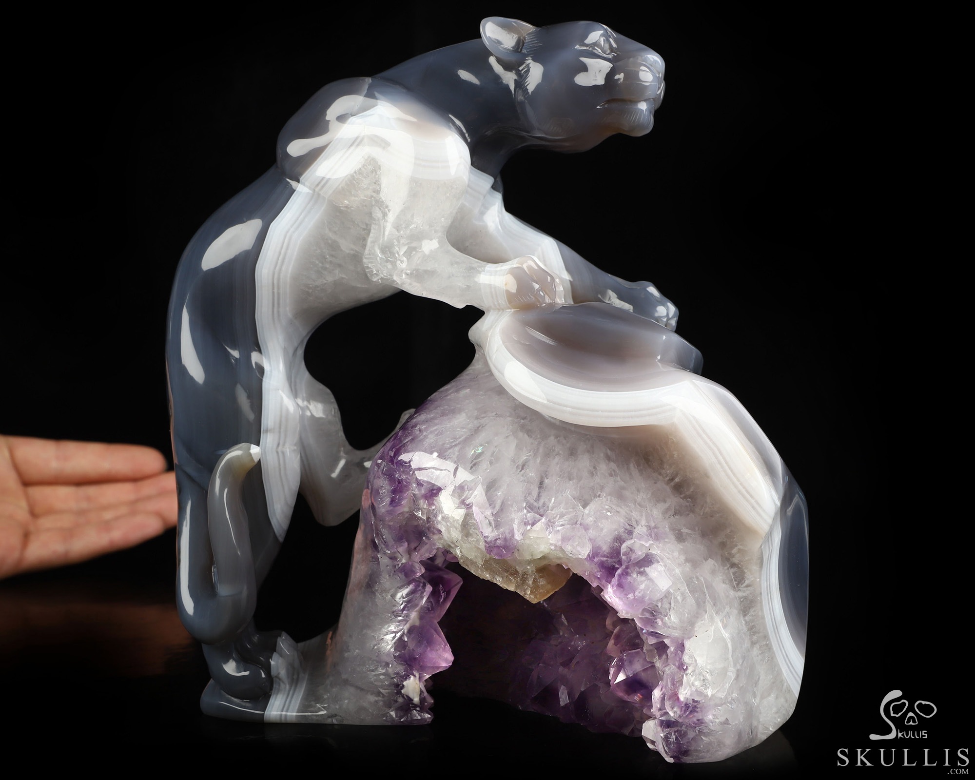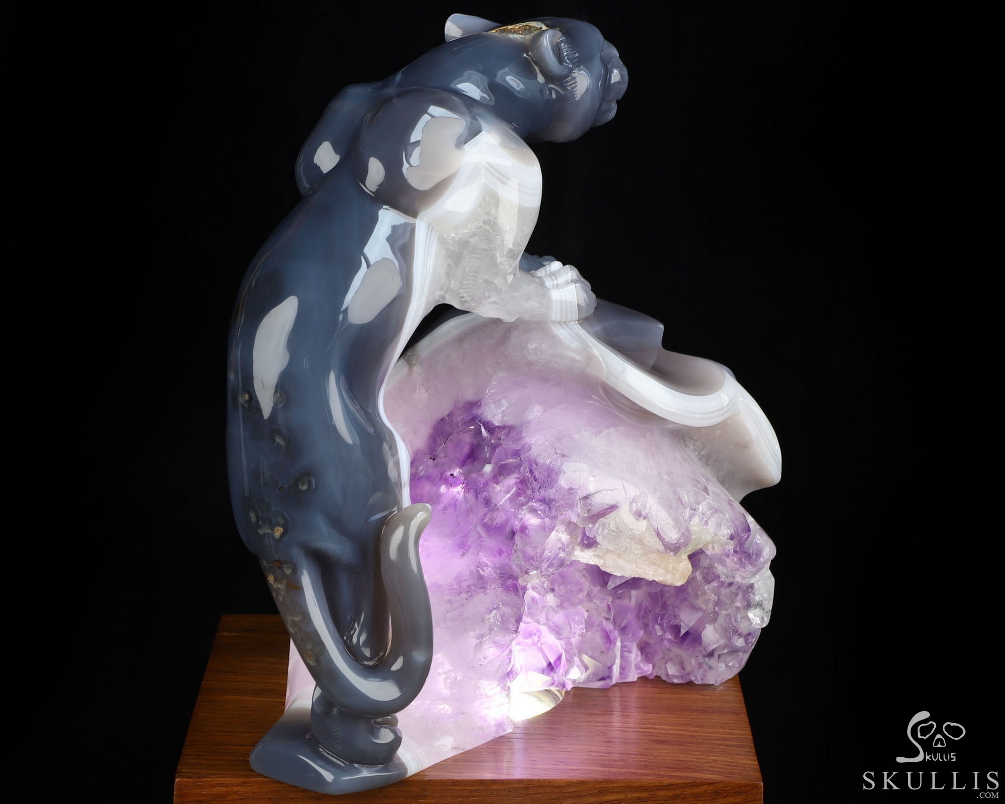 7.7" Agate Amethyst Geode Hand Carved Crystal Leopard Fine Art Sculpture, Crystal Healing