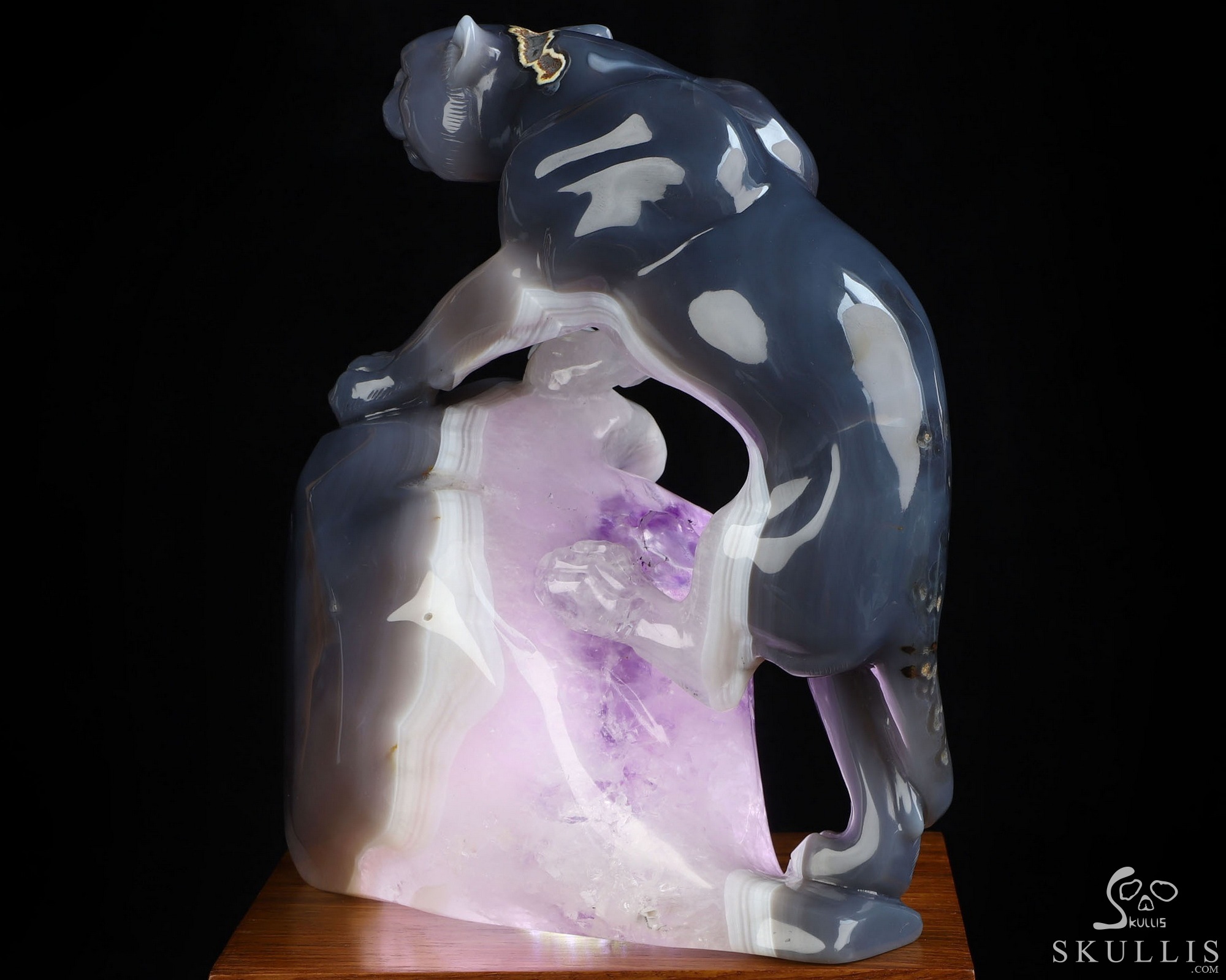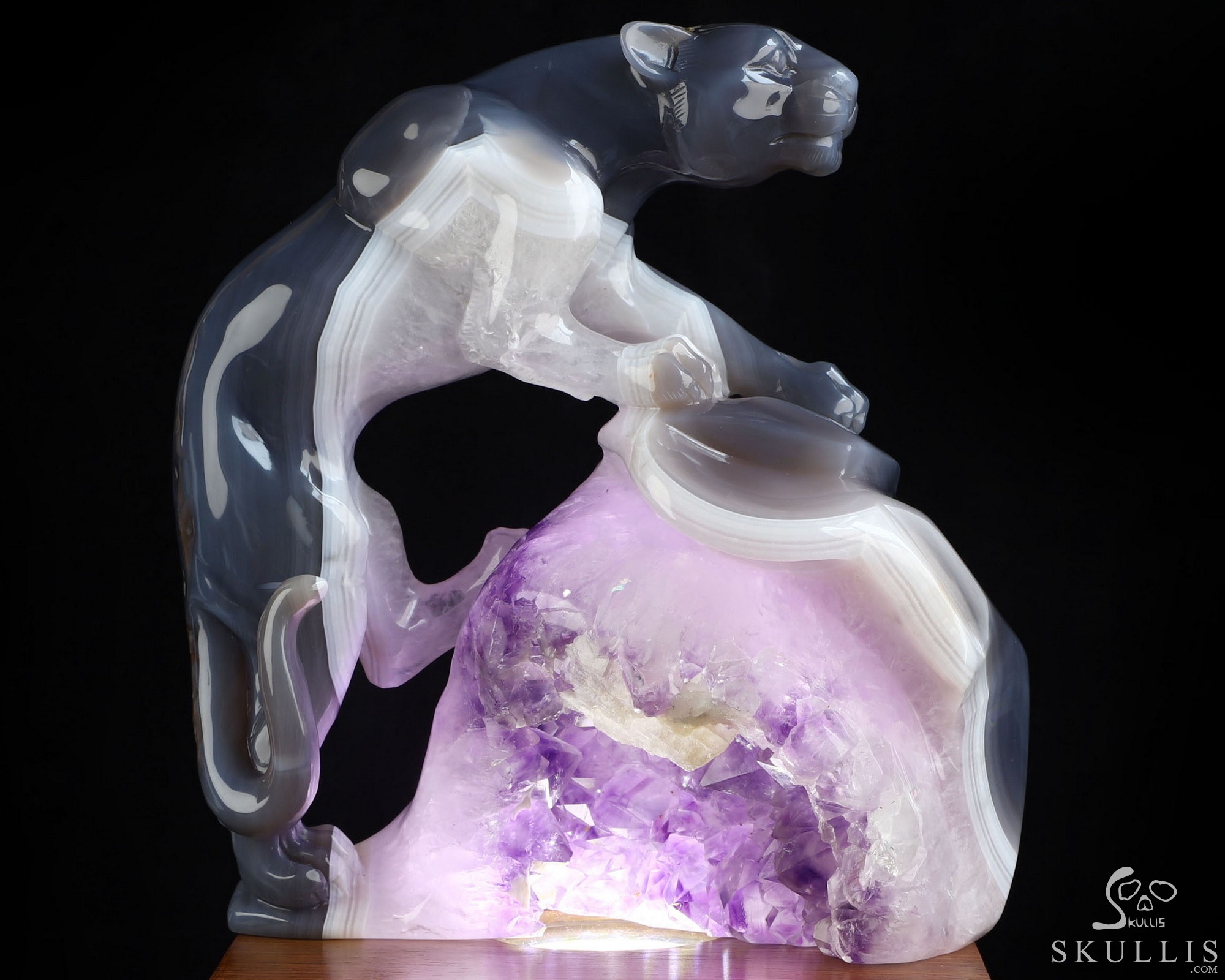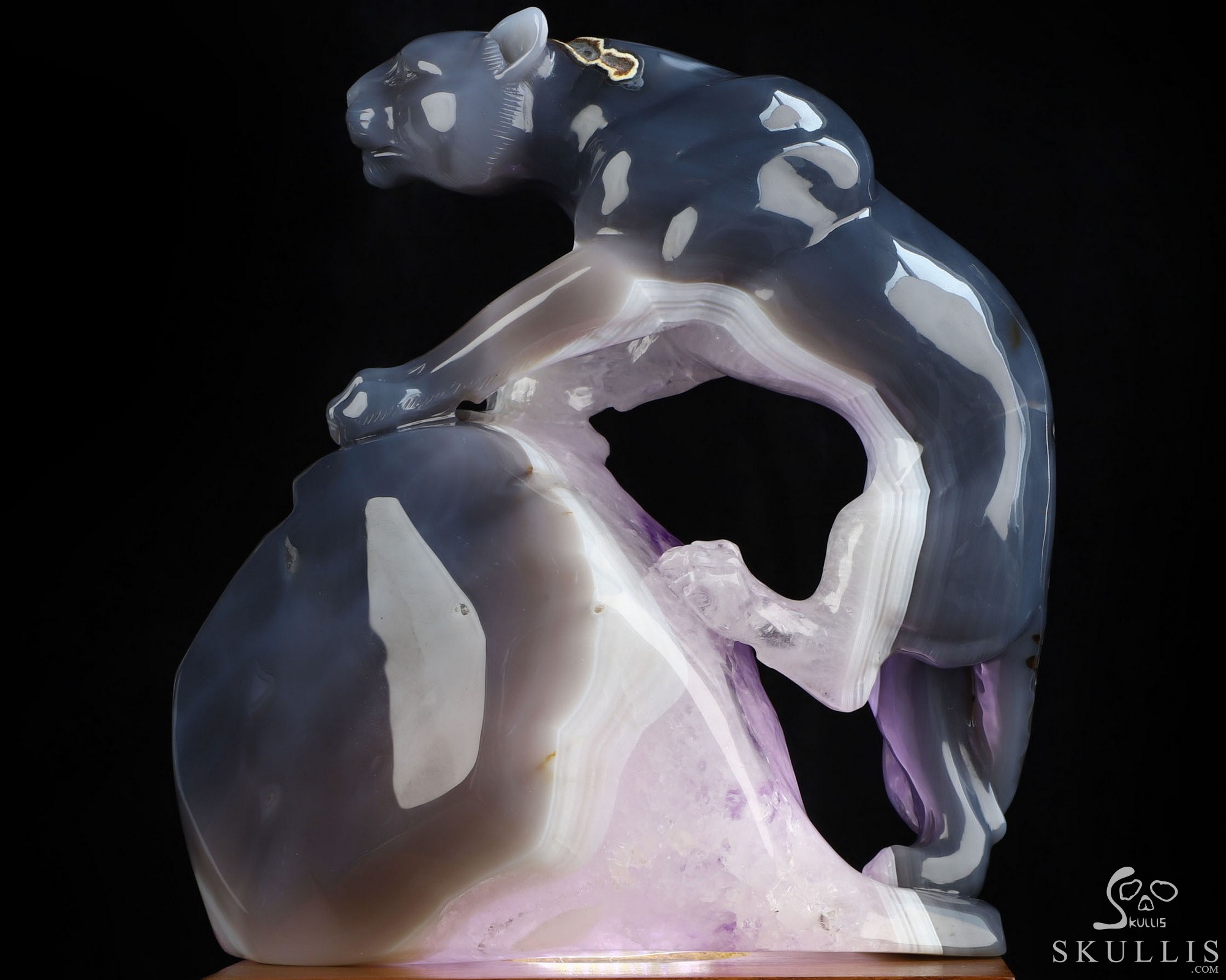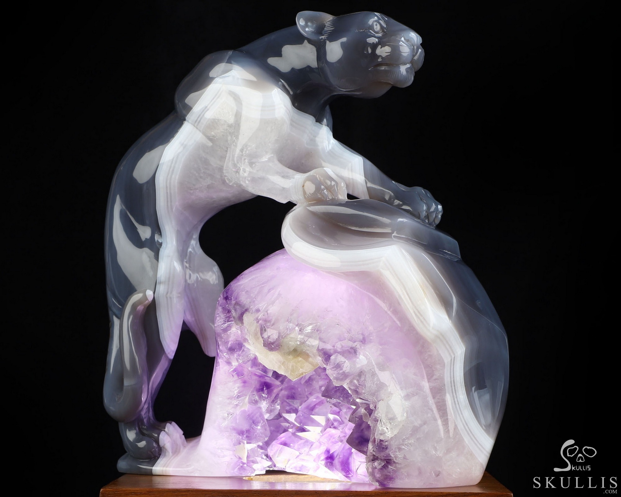 7.7" Agate Amethyst Geode Hand Carved Crystal Leopard Fine Art Sculpture, Crystal Healing