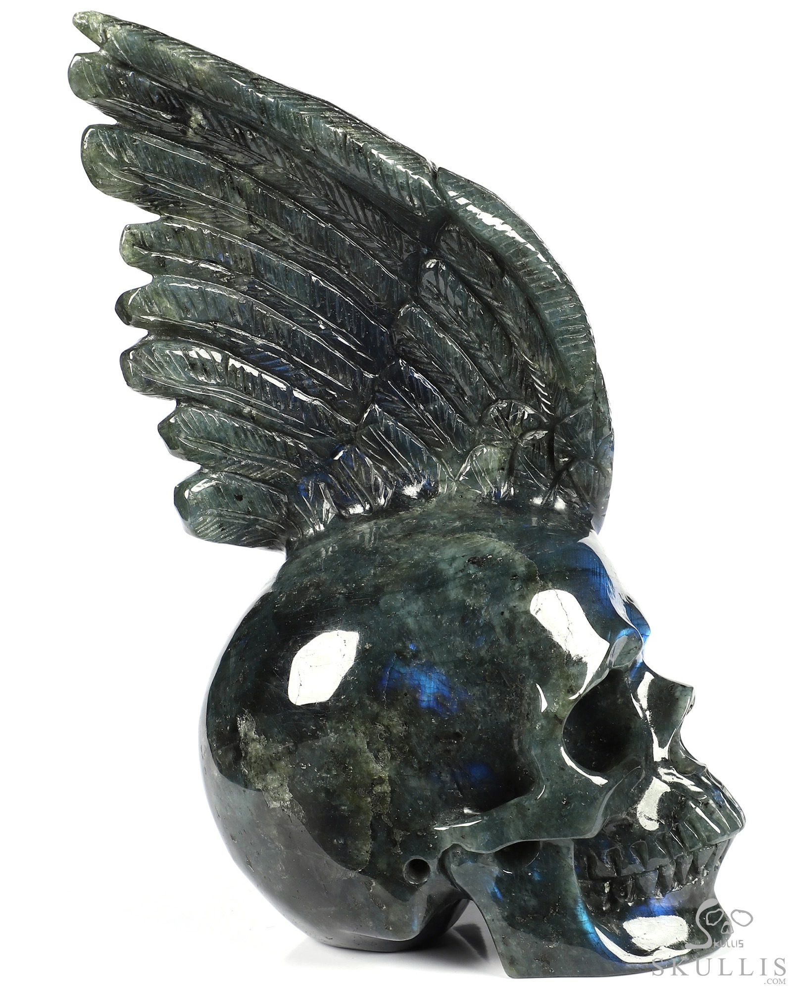 7.7" Labradorite Carved Crystal Skull & Wings, Realistic