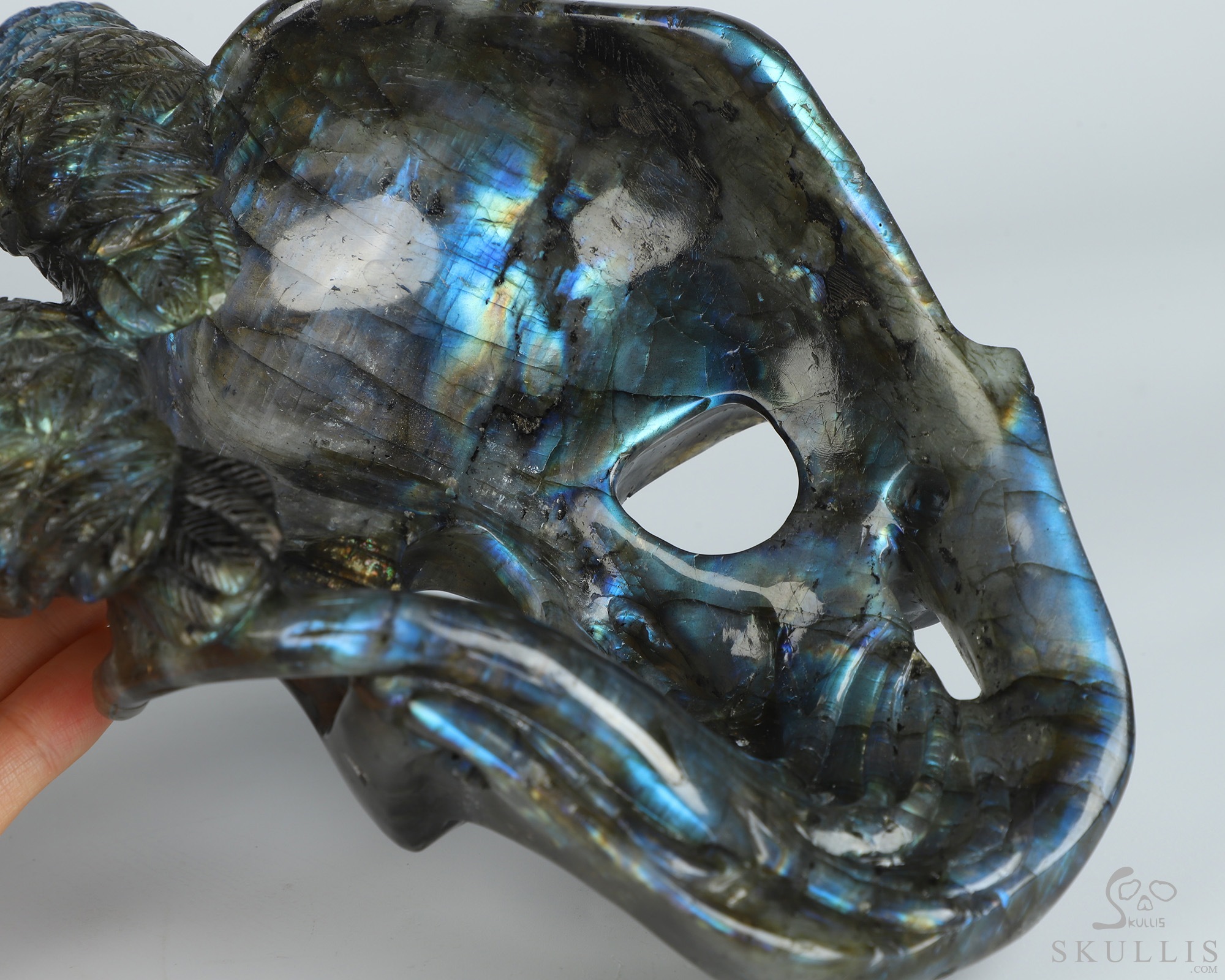 4.9" Labradorite Hand Carved Crystal Dragon Skull Sculpture, Crystal Healing