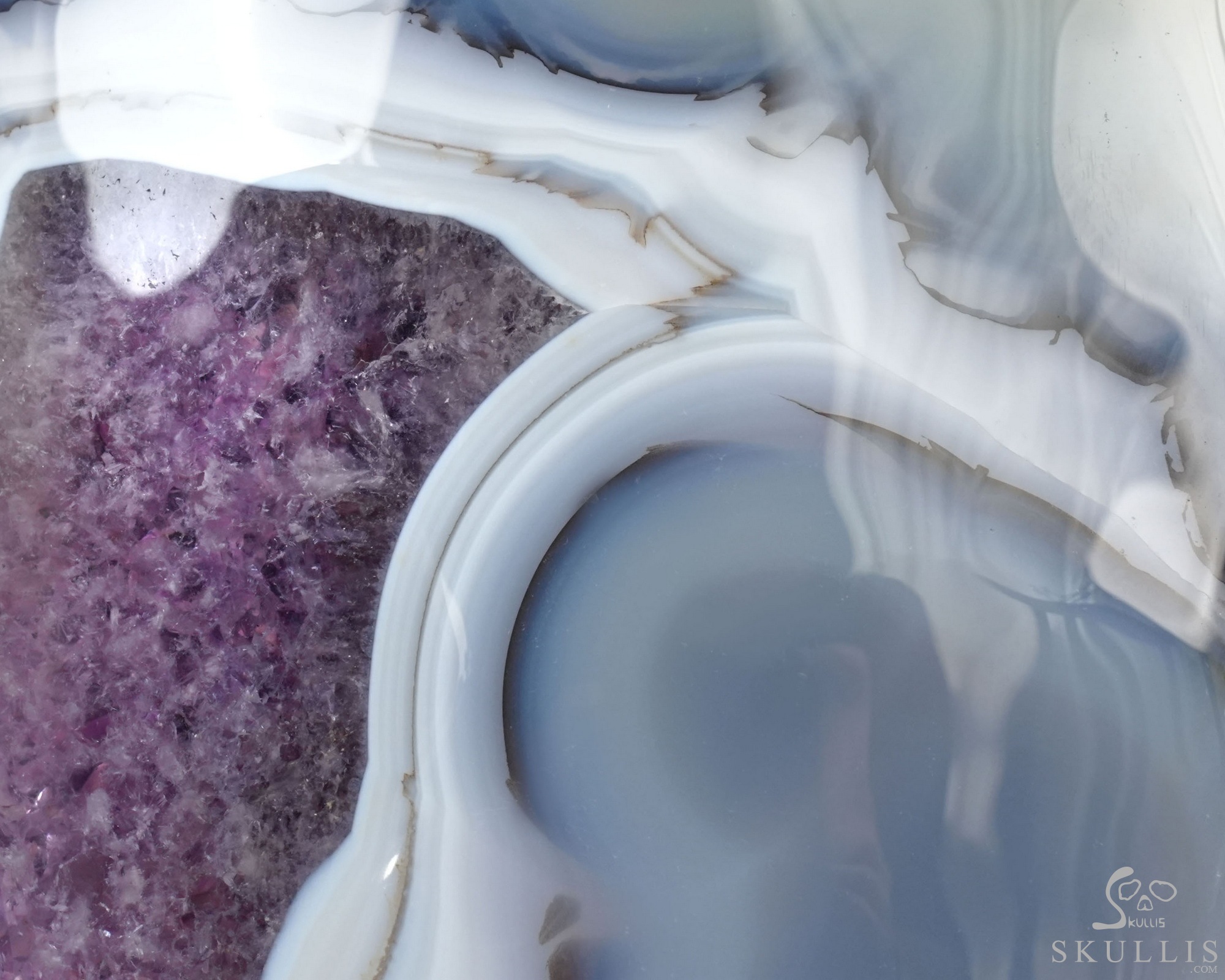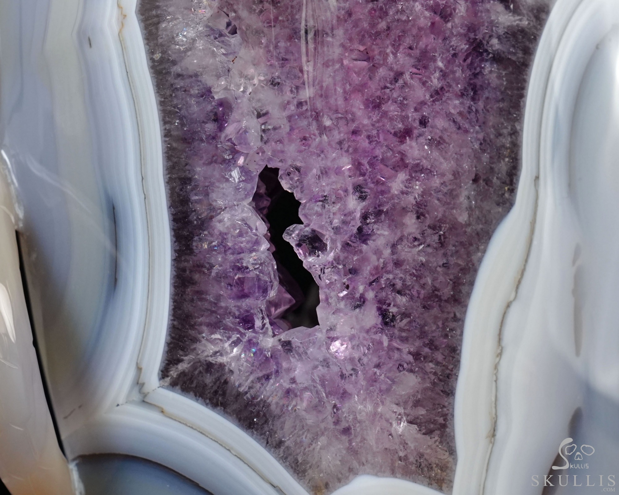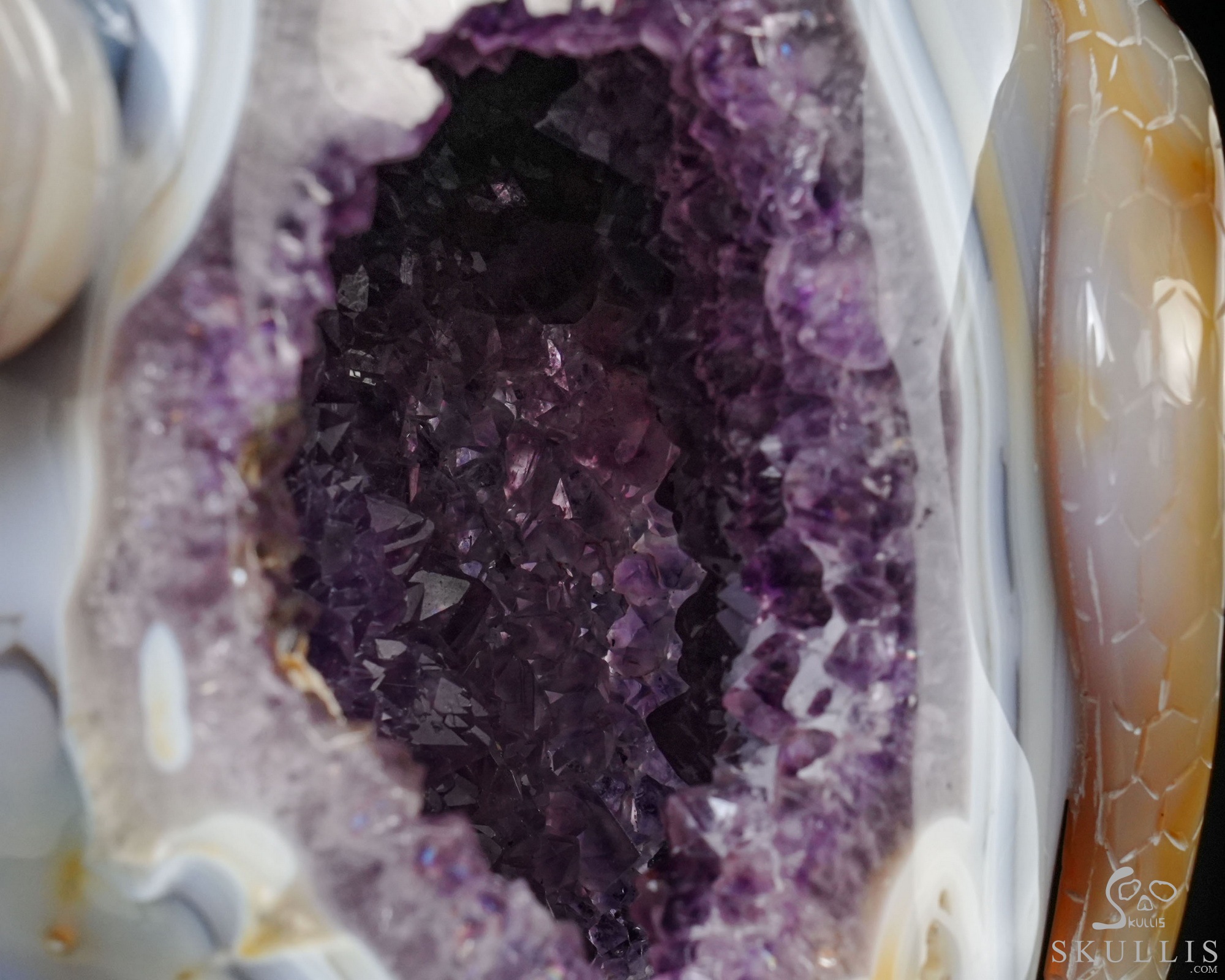 The Hidden Galaxy - 6.2" Agate Amethyst Geode Hand Carved Crystal Skull, Super Realistic, Crystal Healing