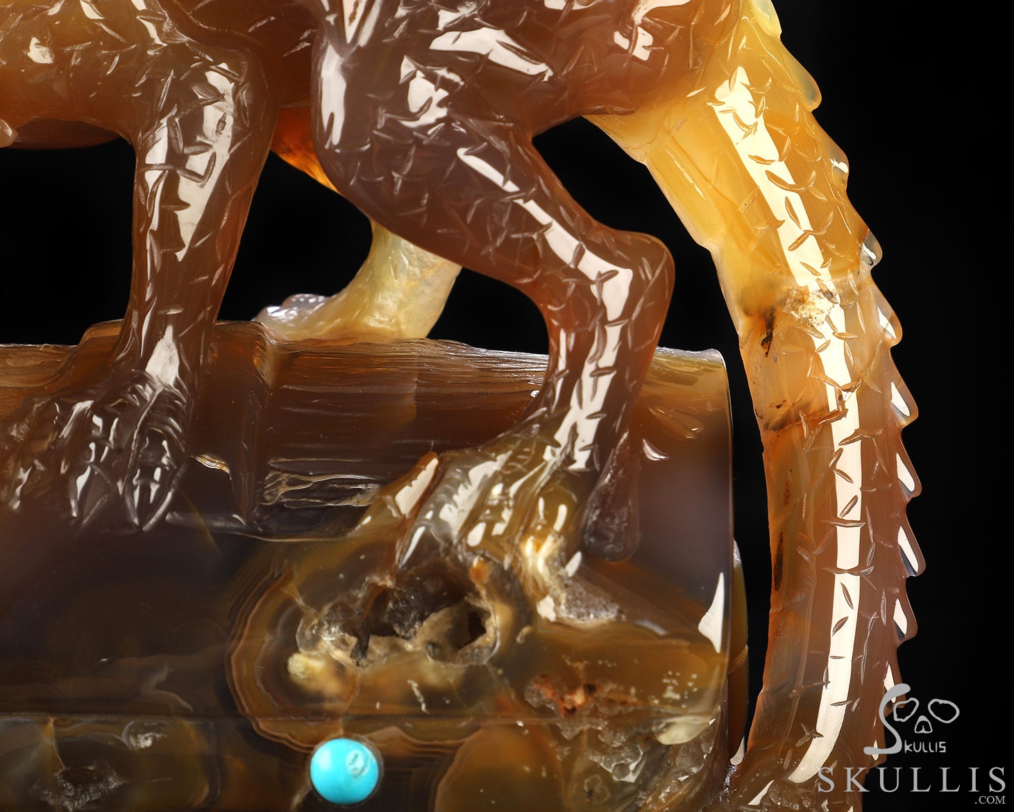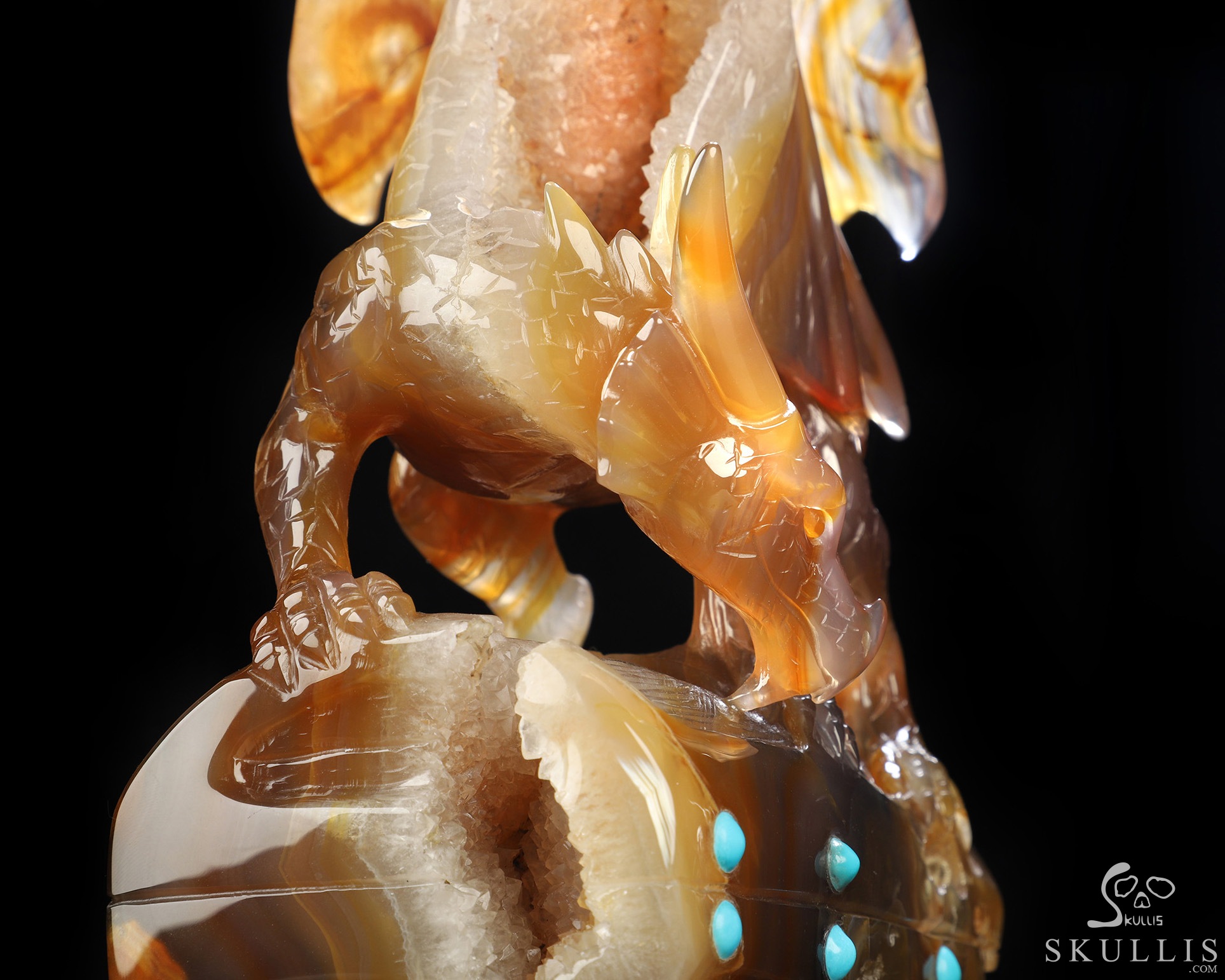 5.0" Premium Brazilian Agate Hand Carved Crystal Dragon Fine Art Sculpture, Crystal Healing
