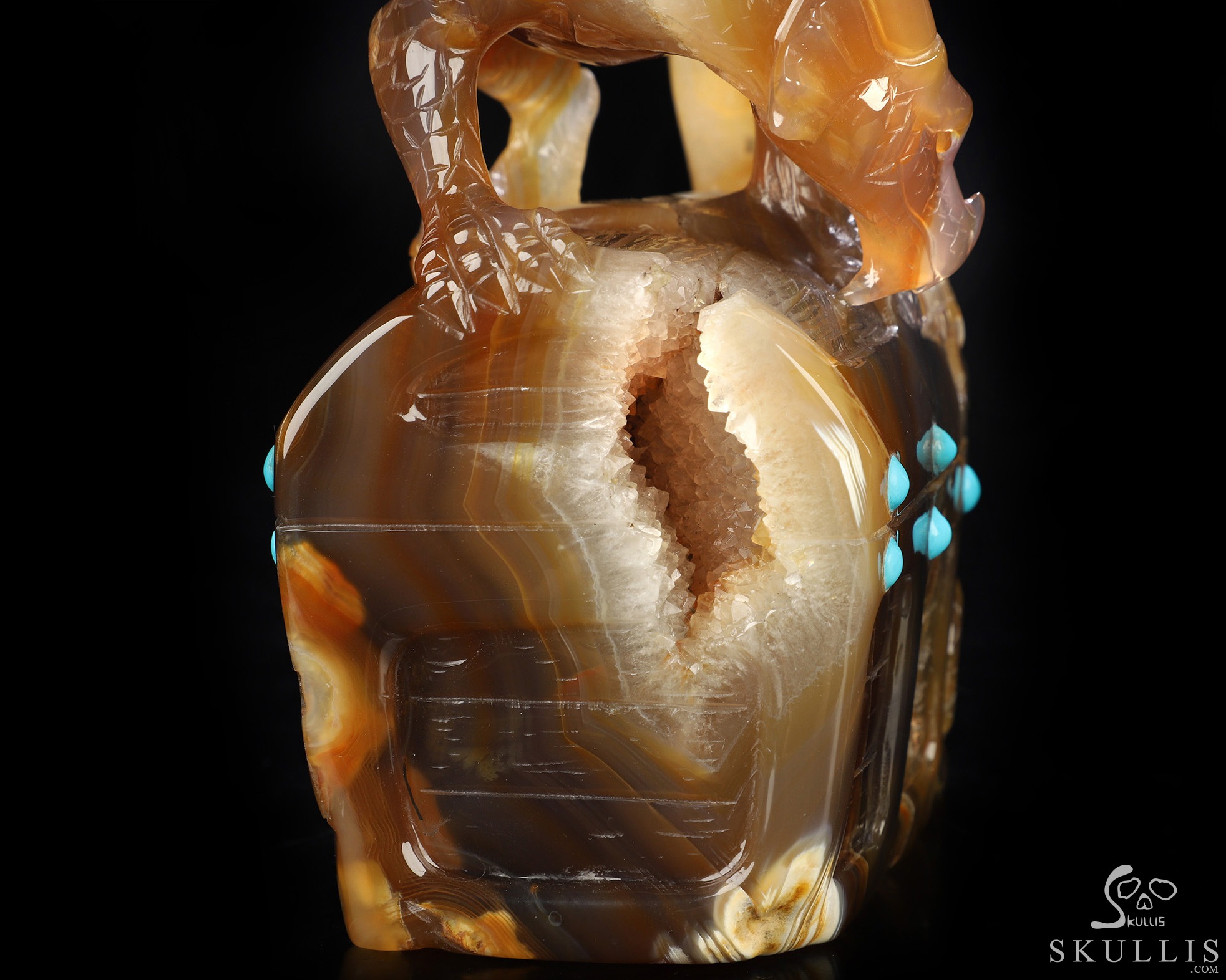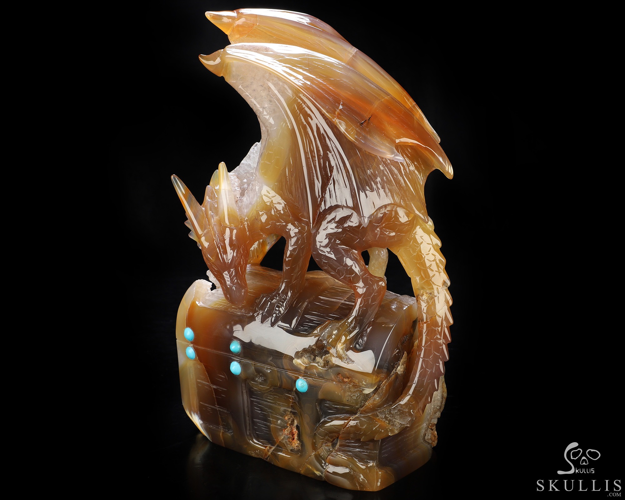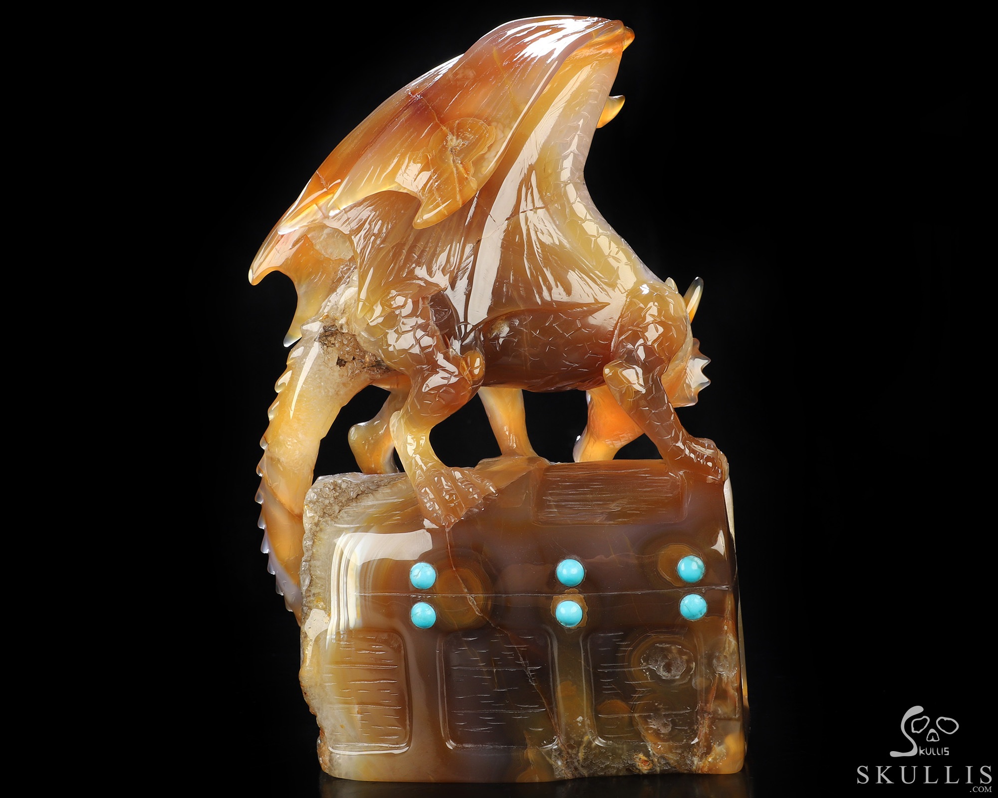5.0" Premium Brazilian Agate Hand Carved Crystal Dragon Skull Sculpture, Crystal Healing