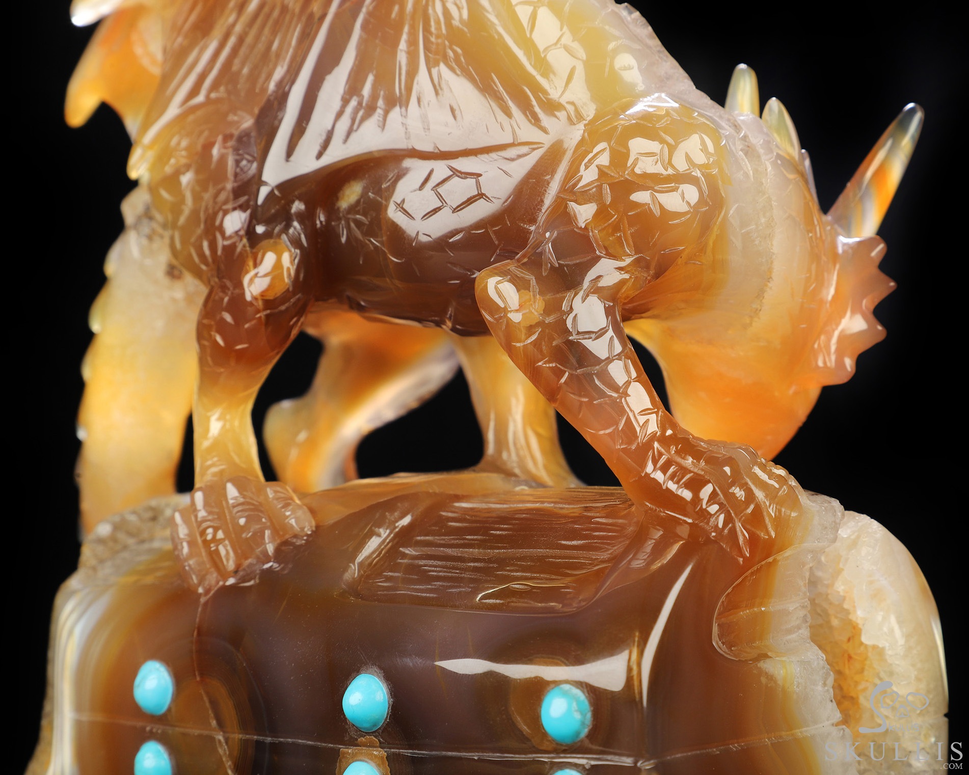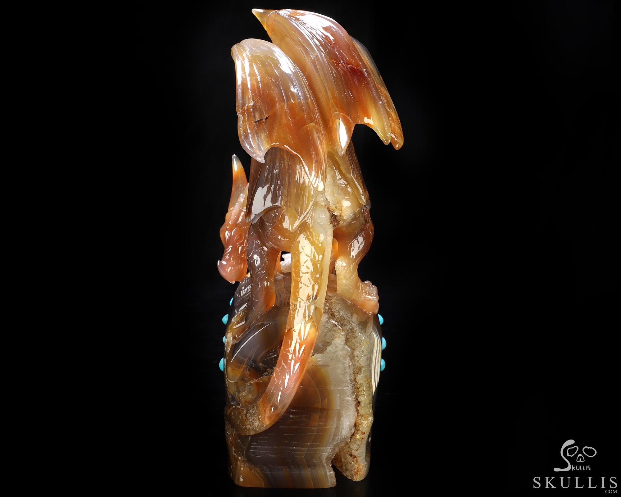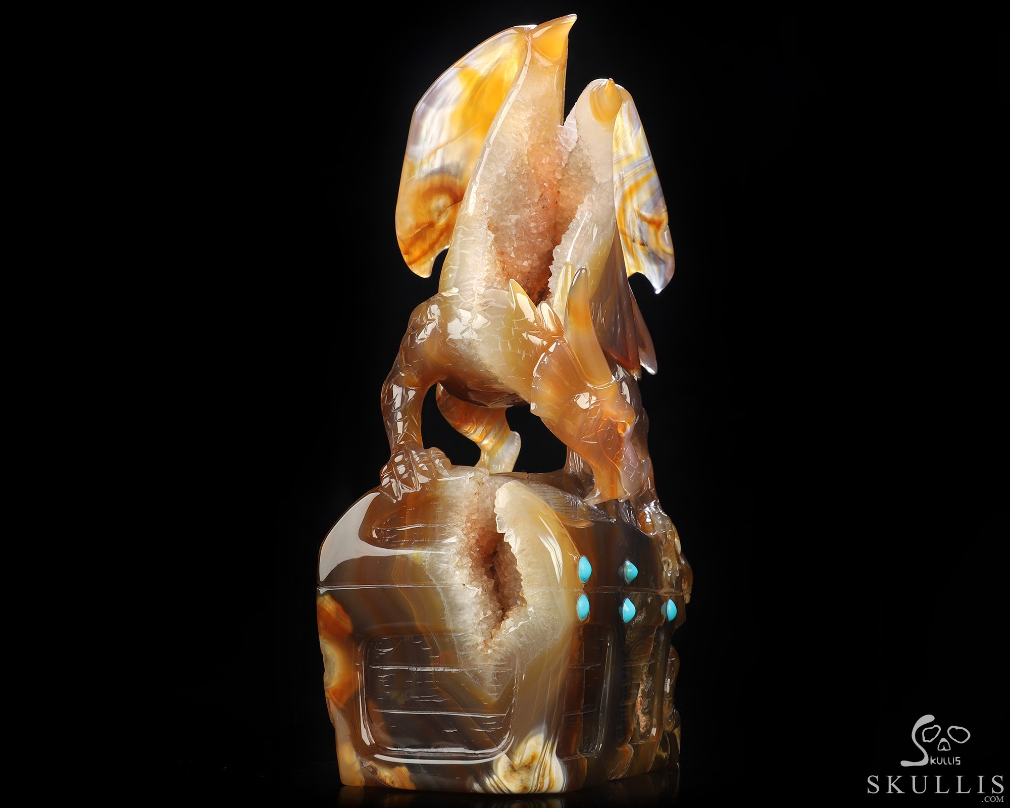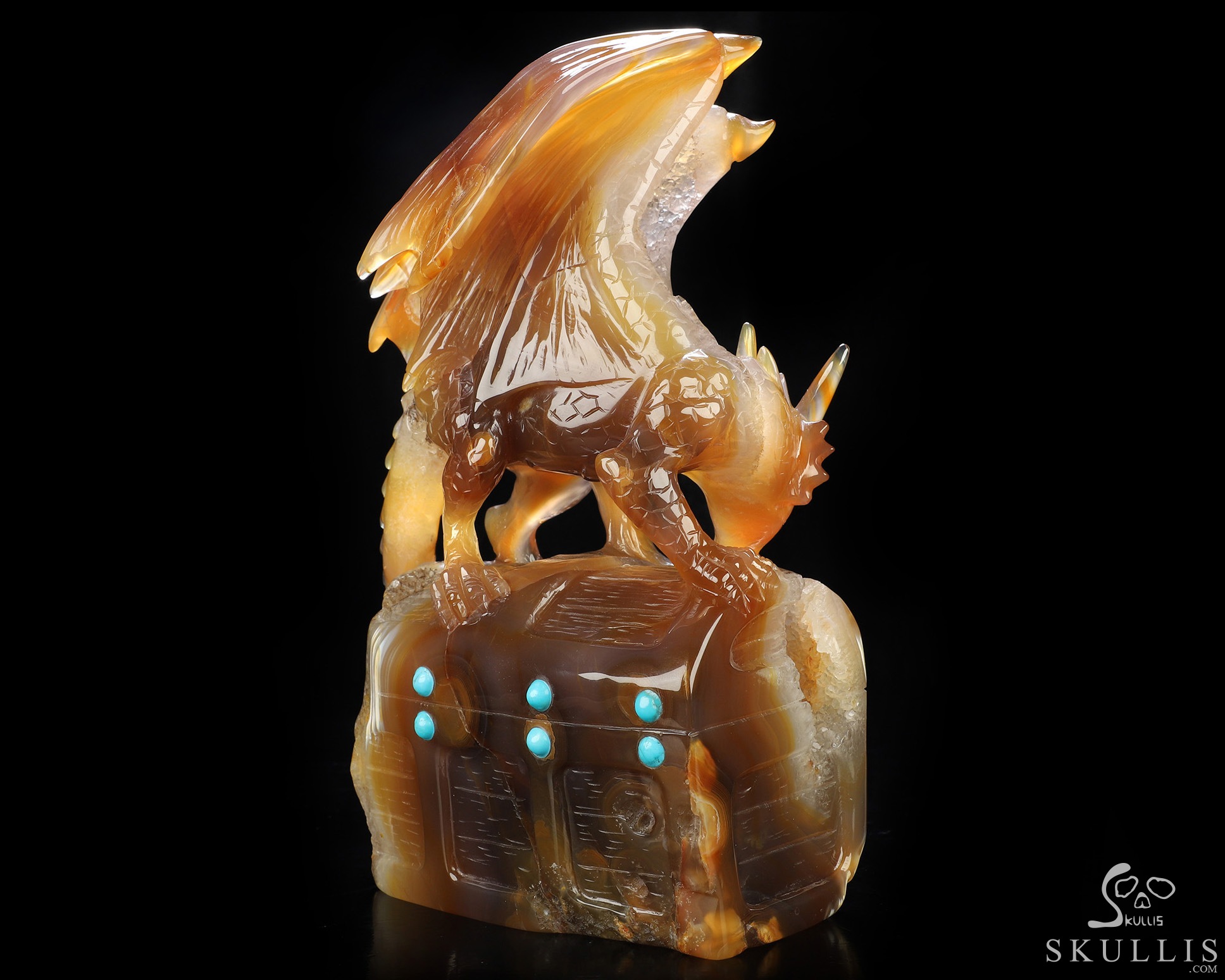 5.0" Premium Brazilian Agate Hand Carved Crystal Dragon Skull Sculpture, Crystal Healing
