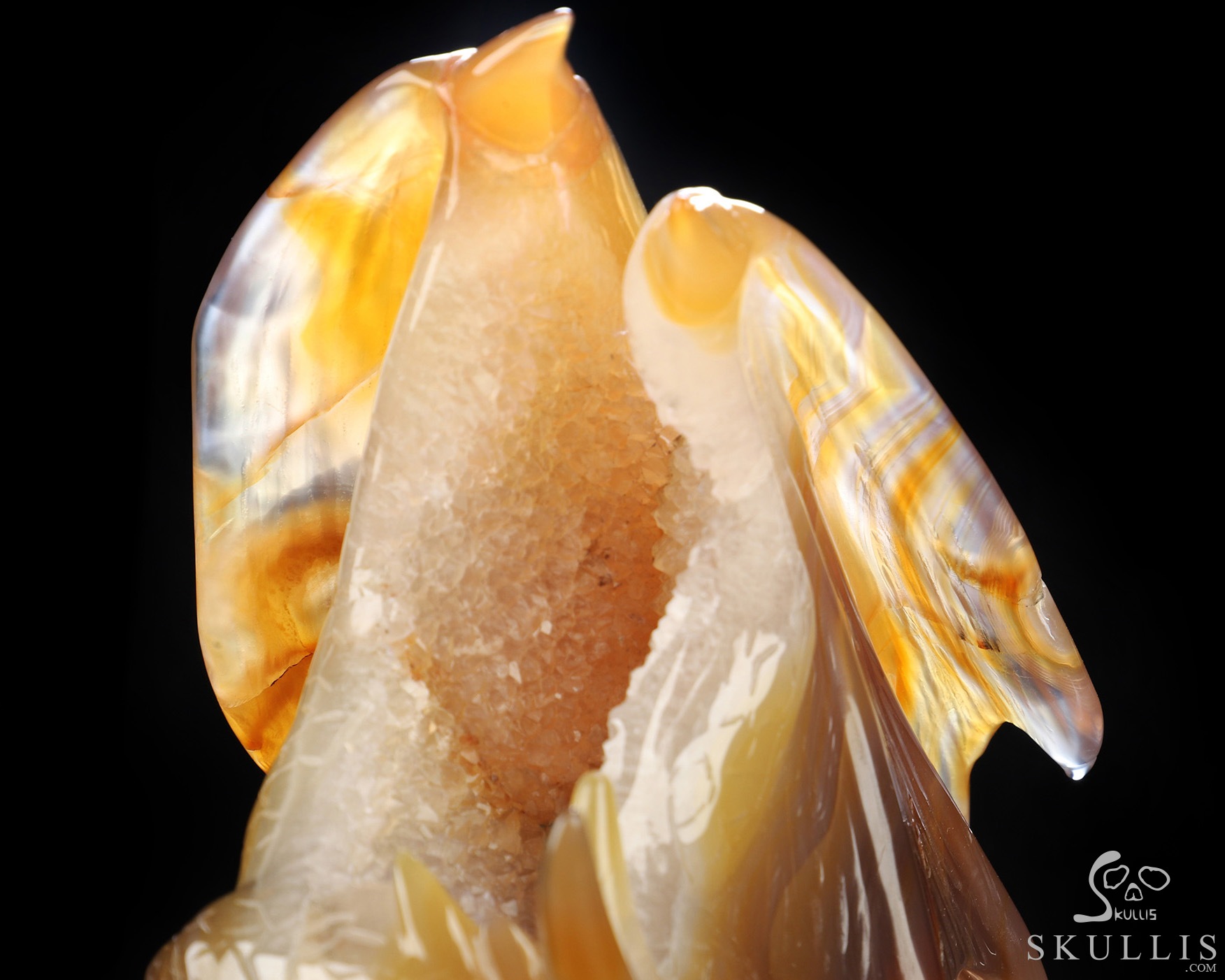You are looking at a Premium Brazilian Agate skull. The skull is 8.4 inches from top to bottom.