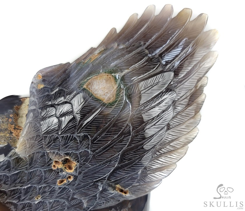 8.5" Agate Geode Carved Crystal Skull & Wing, Crystal Healing