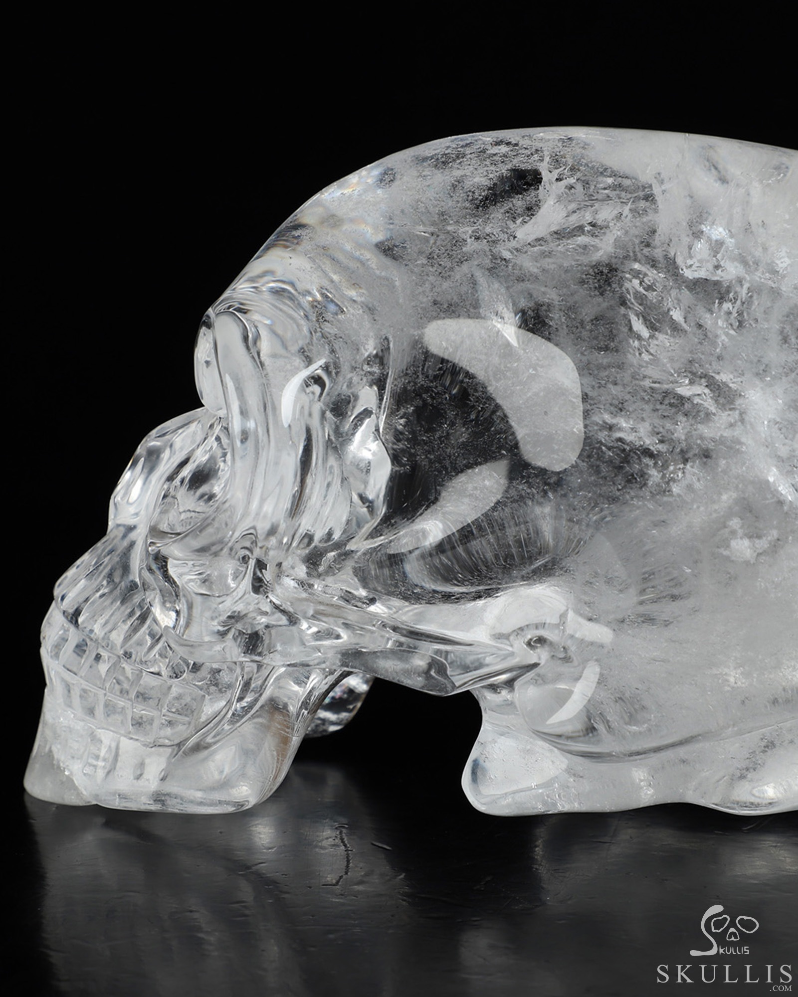 9.1" Quartz Rock Crystal Hand Carved Crystal Skull Fine Art Sculpture, Crystal Healing