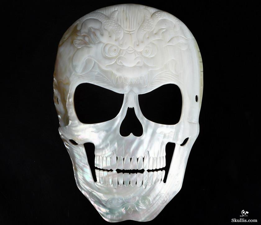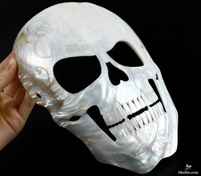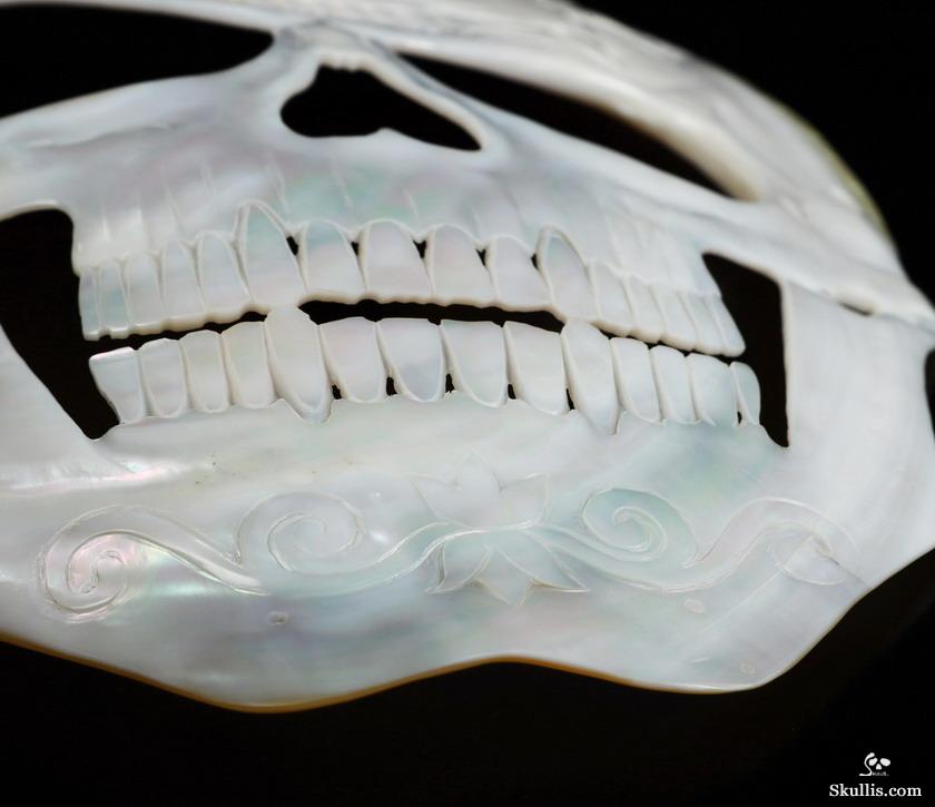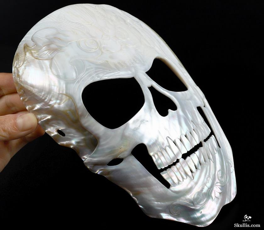 5.8" Shell Hand Carved Crystal Skull Fine Art Sculpture, Crystal Healing