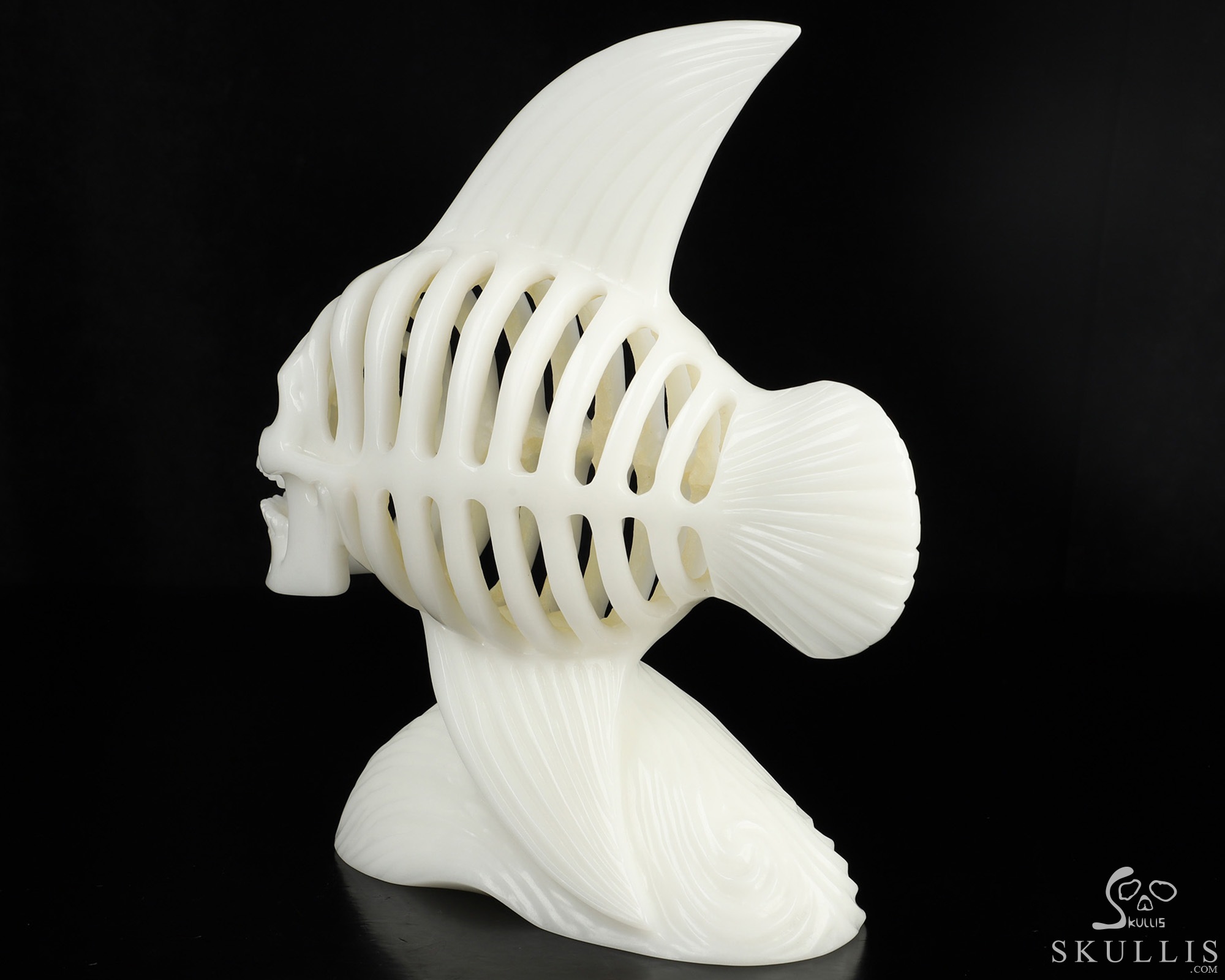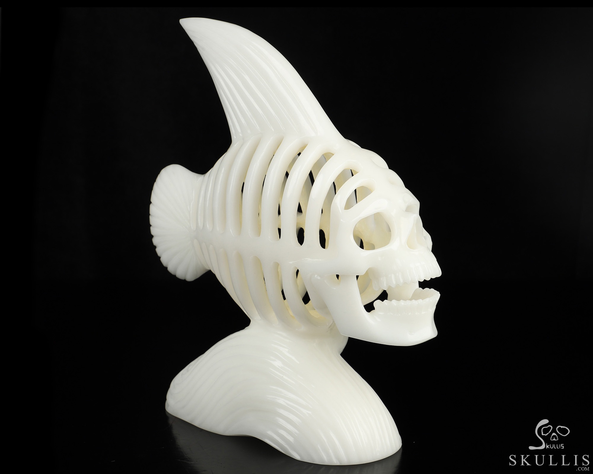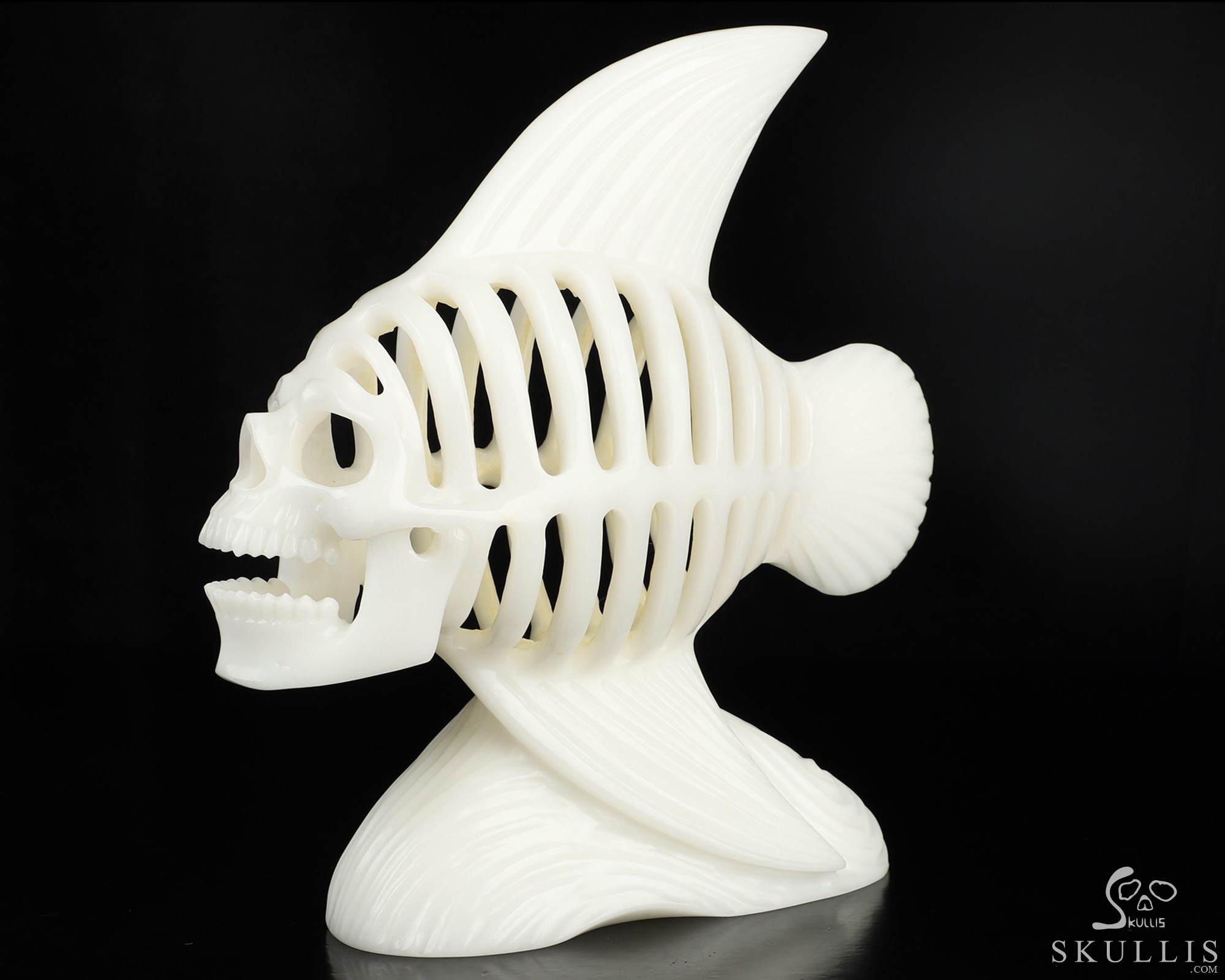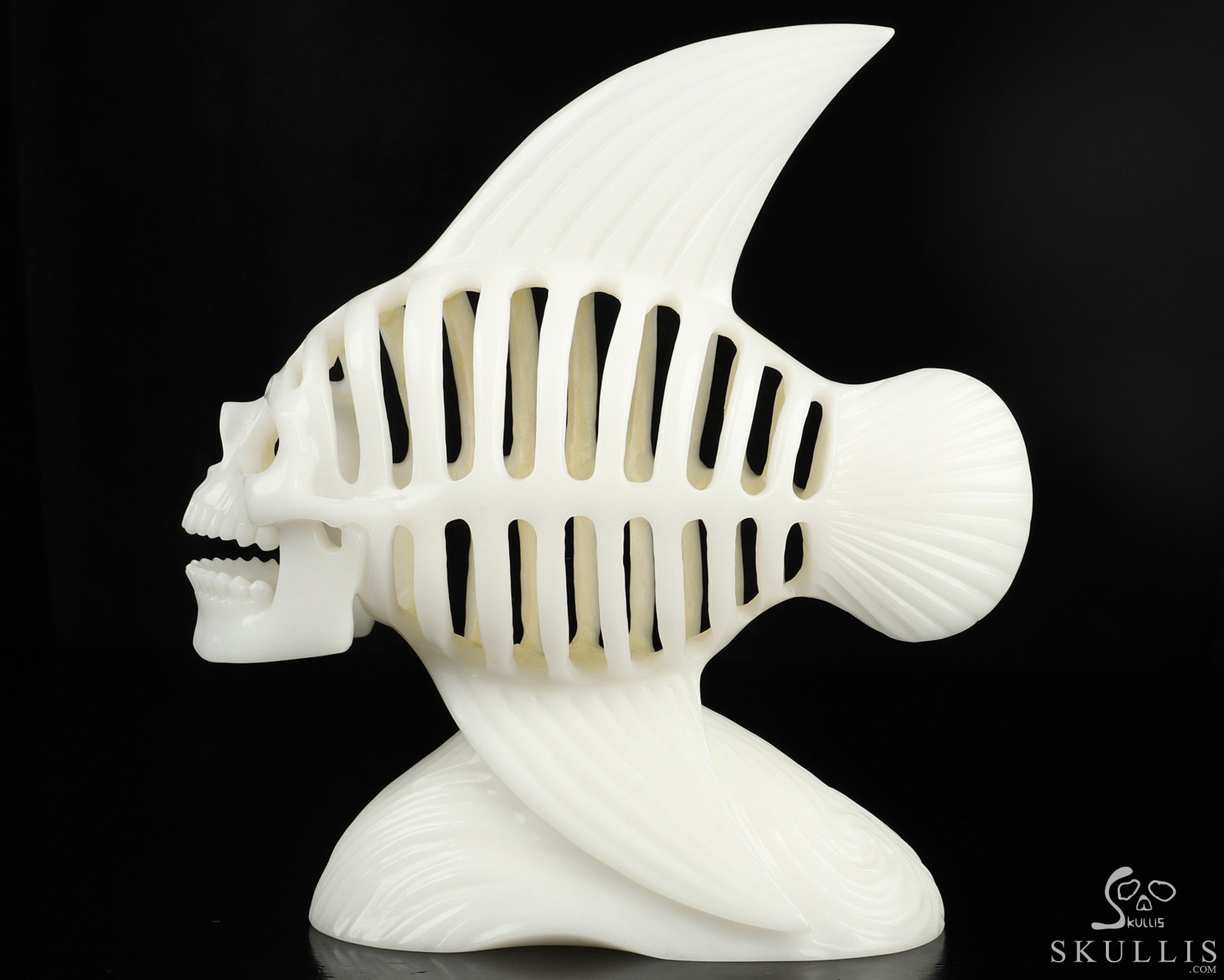 Amazing 11.1" White Jade Hand Carved Crystal Fish Skull Fine Art Sculpture, Crystal Healing