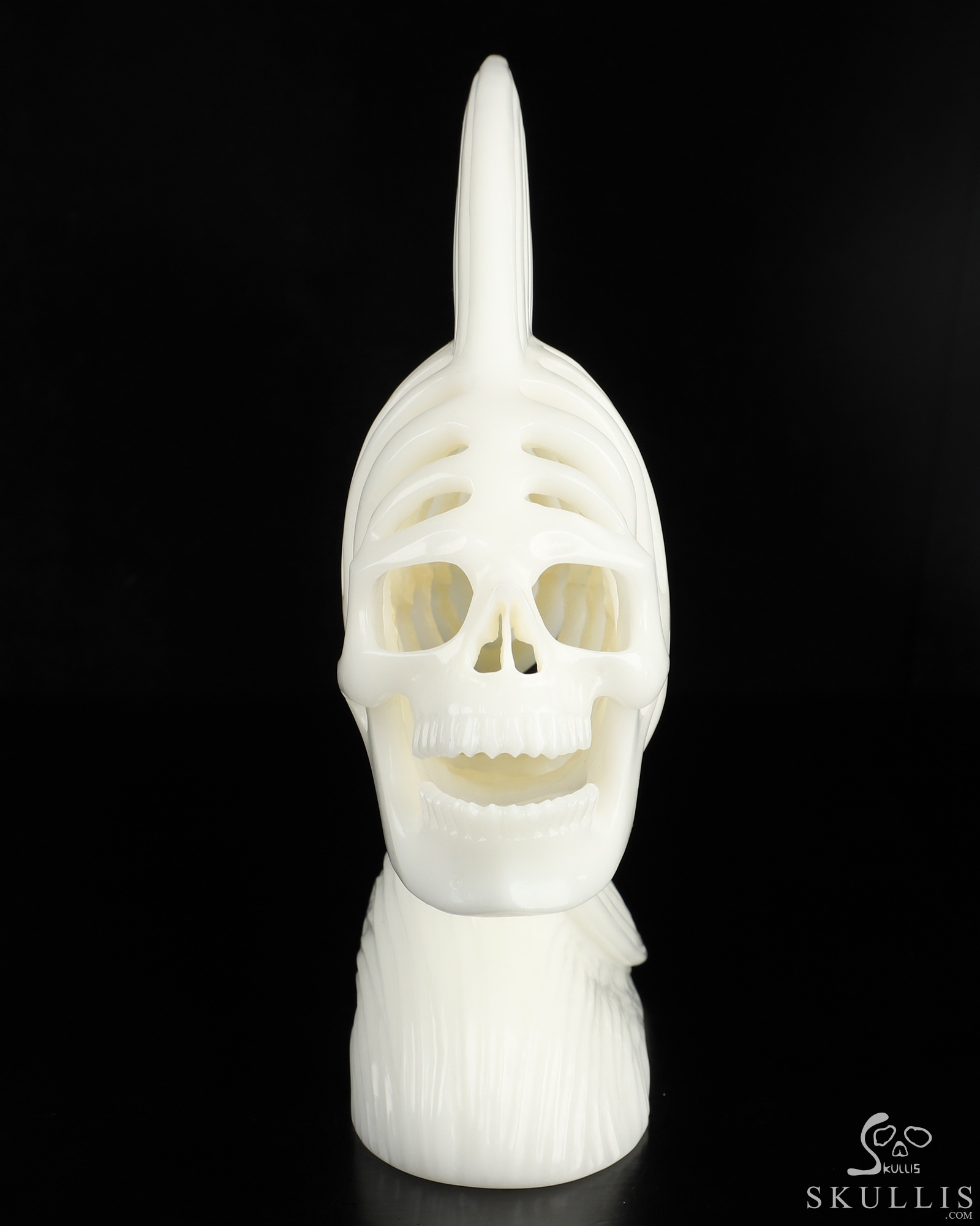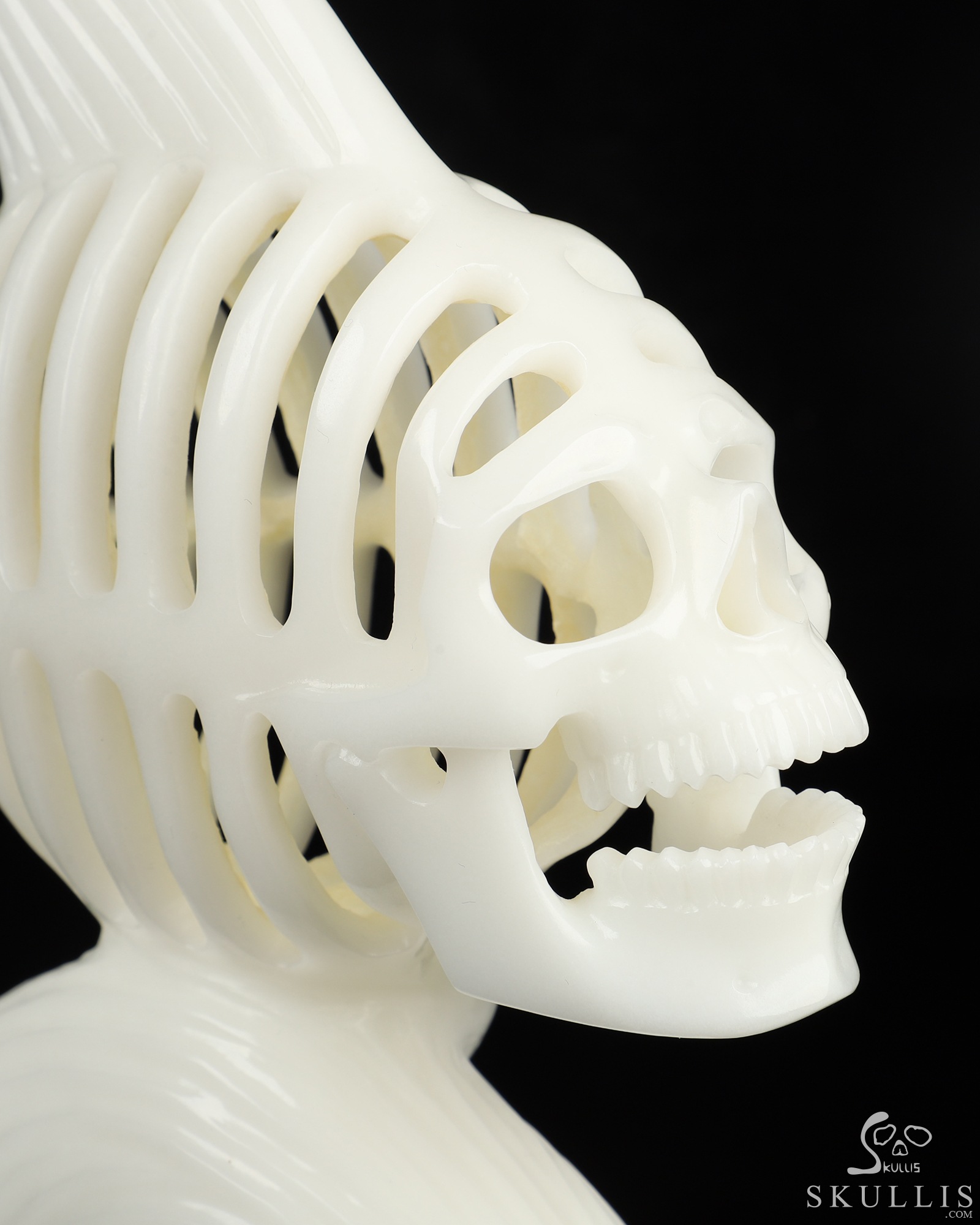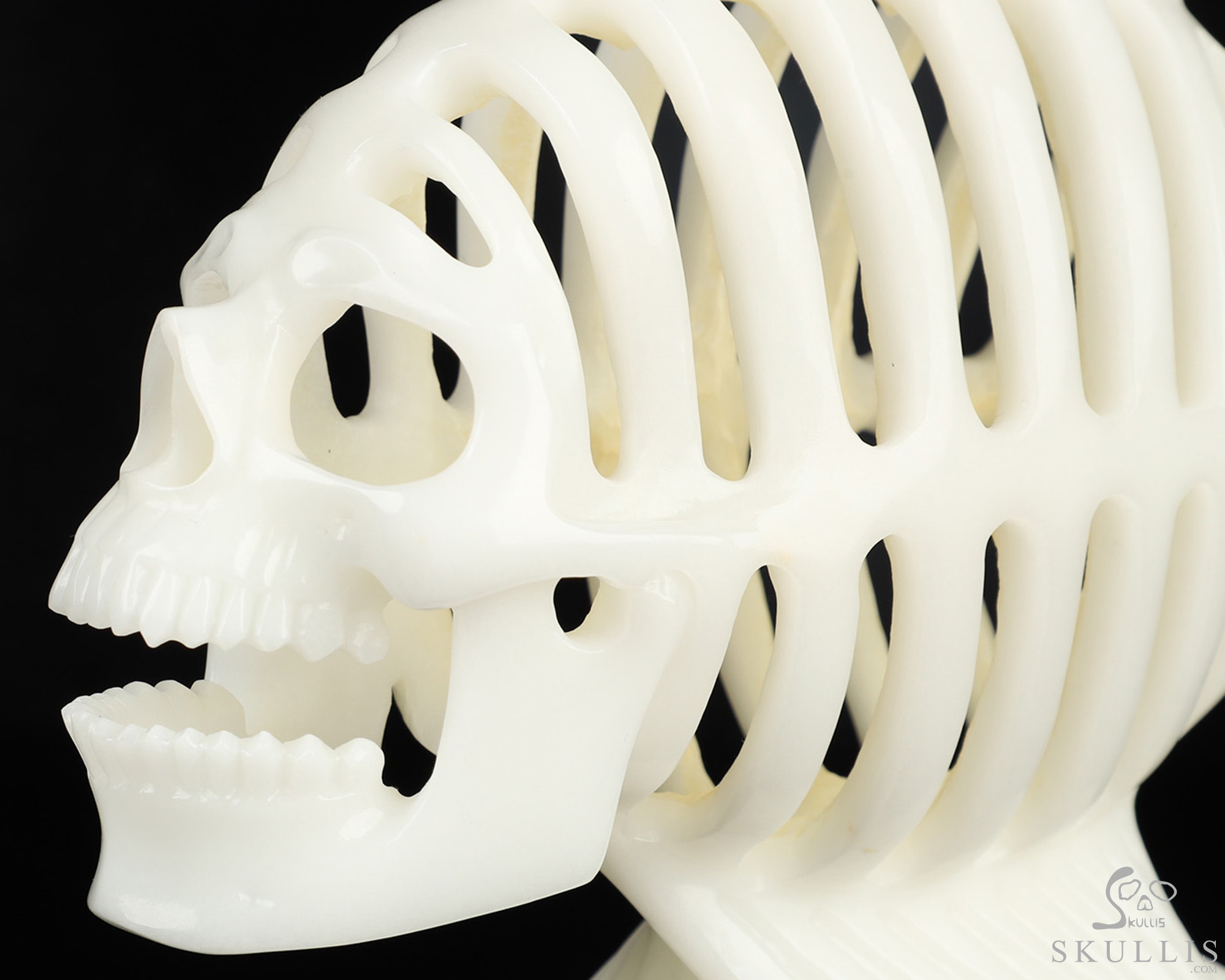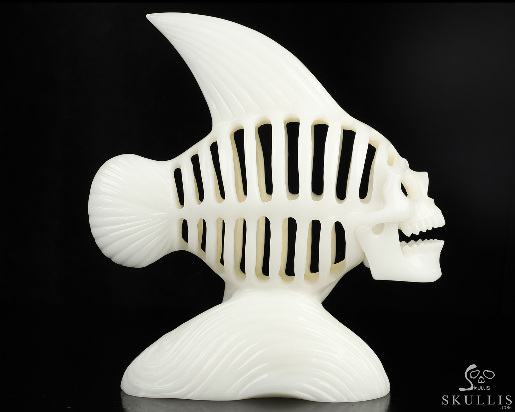 Amazing 11.1" White Jade Hand Carved Crystal Fish Skull Fine Art Sculpture, Crystal Healing