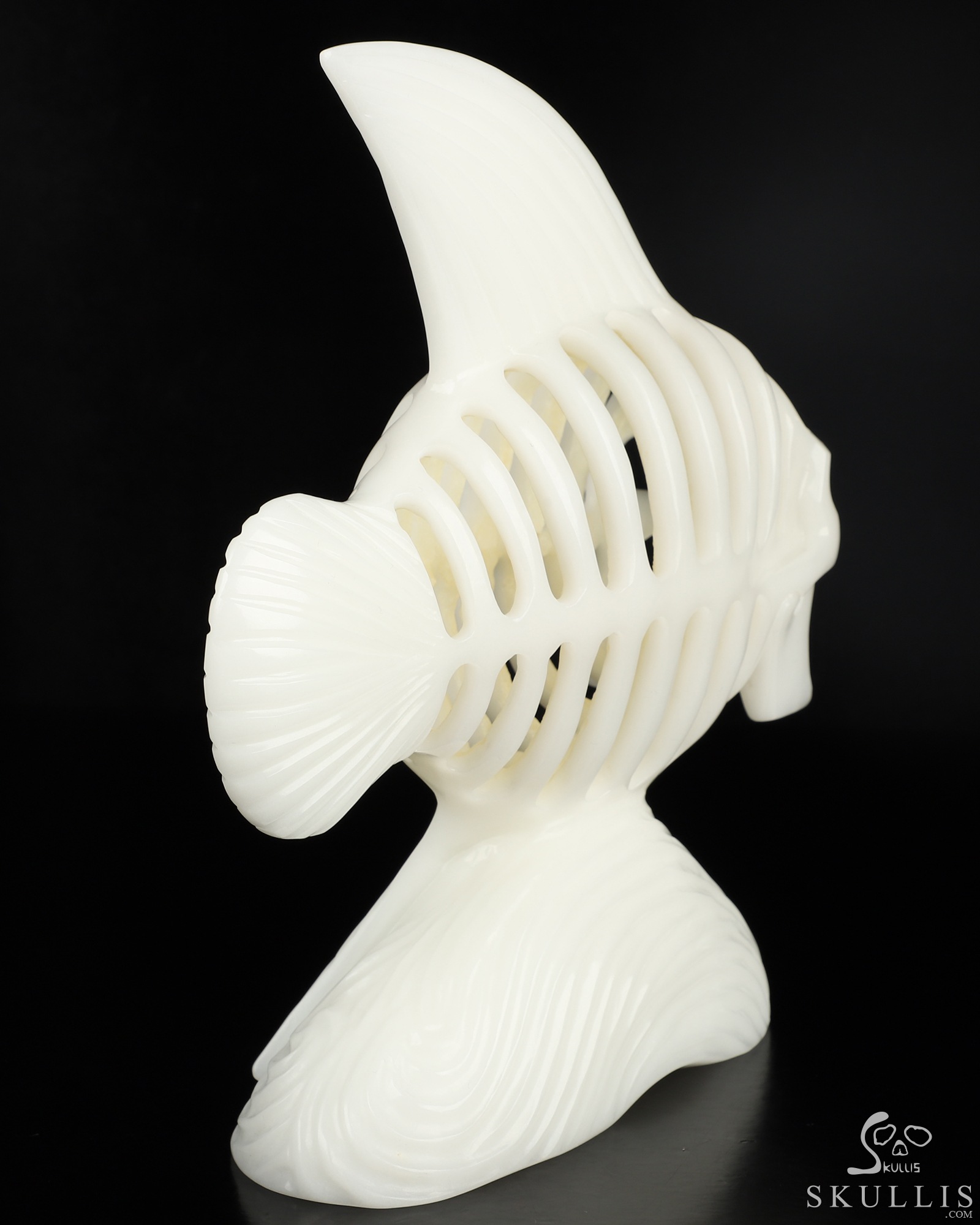 8.9" White Jade Hand Carved Fish Skeleton Fine Art Sculpture, Crystal Healing