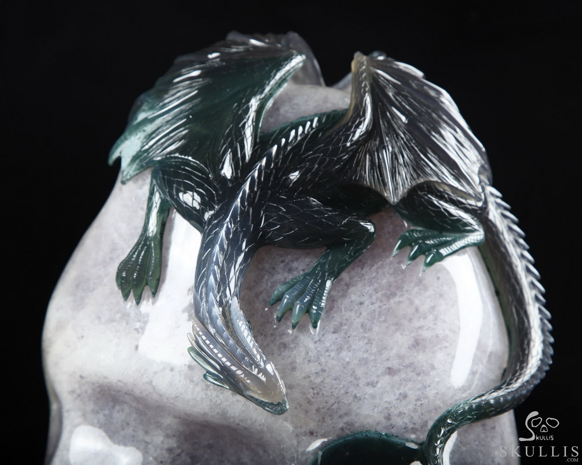 AMAZING 8.5" Agate Amethyst Geode Carved Crystal Skull & Dragon Sculpture, Crystal Healing