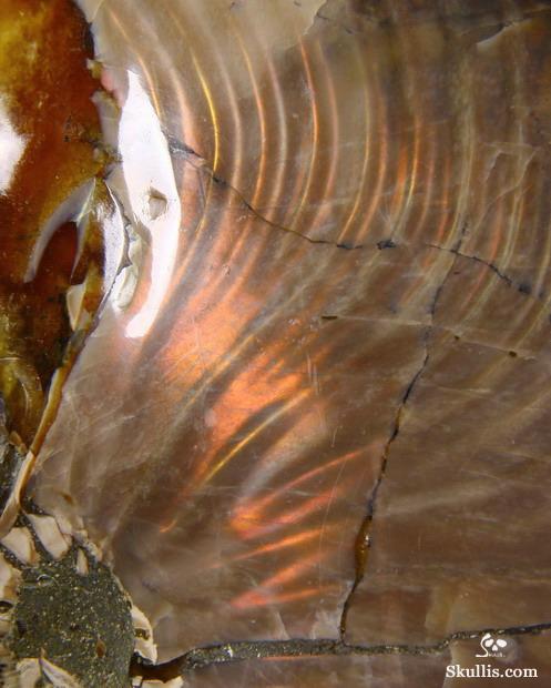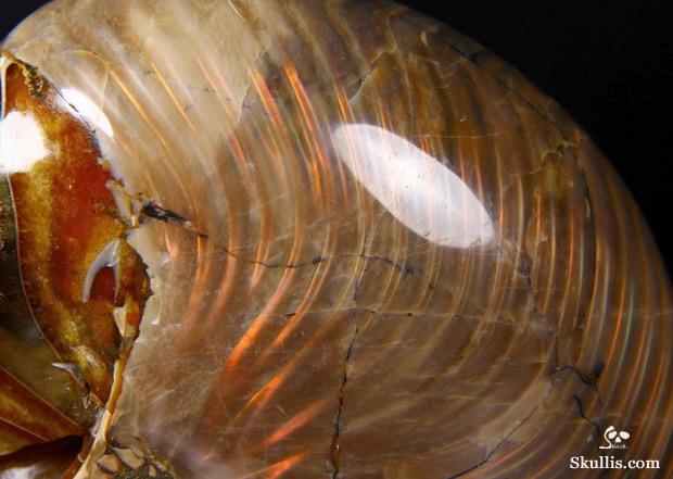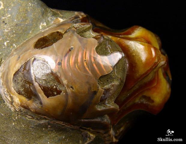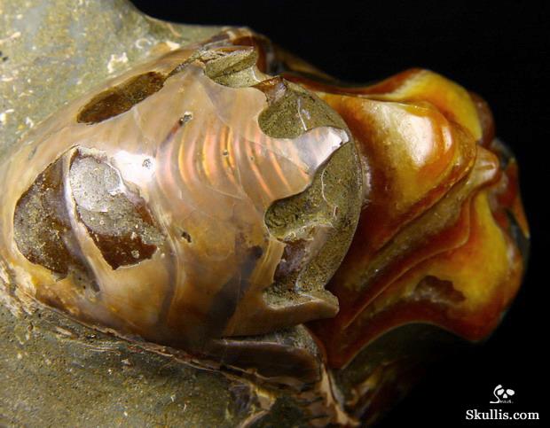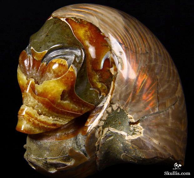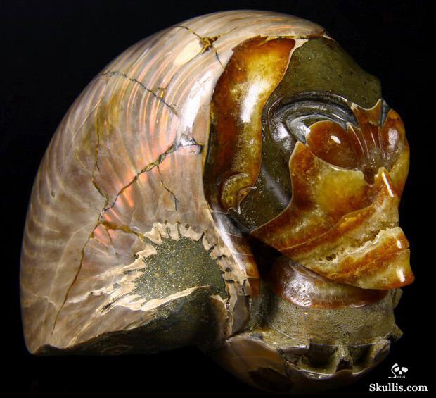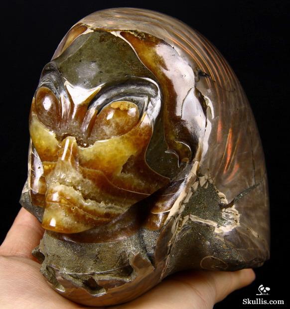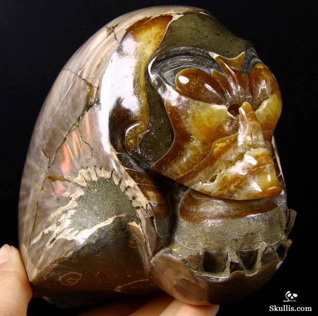 AMAZING FLASH Huge 5.7" mmonite Fossil Carved Crystal Skull