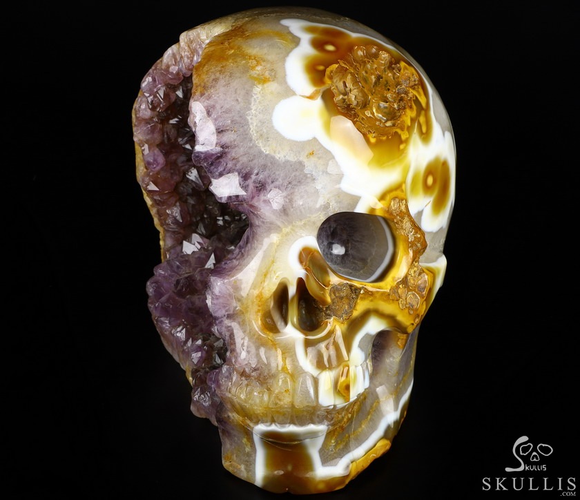 AMAZING GEODE 10.7" Agate Amethyst Geode Carved Crystal Skull,Realistic, Crystal Healing