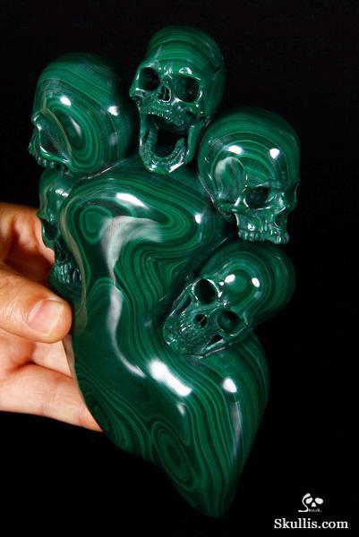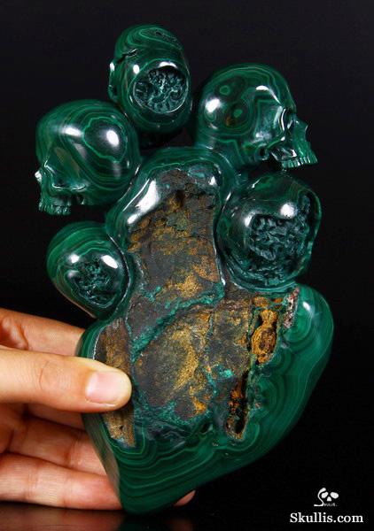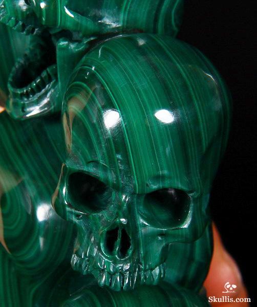 AMAZING Gemstone Huge 6.3" Malachite Carved Crystal Skulls Sculpture