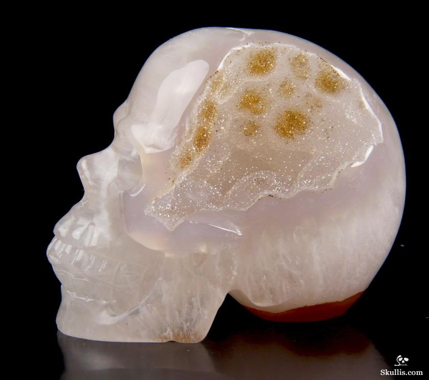 6.7" Agate Geode Carved Crystal Skull, Crystal Healing