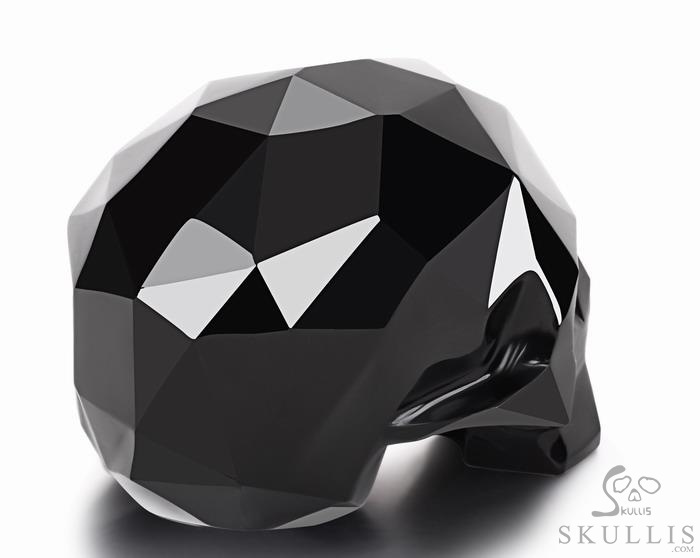 After finally perfecting a rough design, Skullis artists spent over two months working out the details for our new geometric crystal skull sculpture! Much careful dedication went into polishing each facet while avoiding causing damage to the adjacent facets! The result is a surreal black obsidian faceted crystal skull unlike any other! This single piece sculpture is carved from a solid black obsidian specimen from the United States.