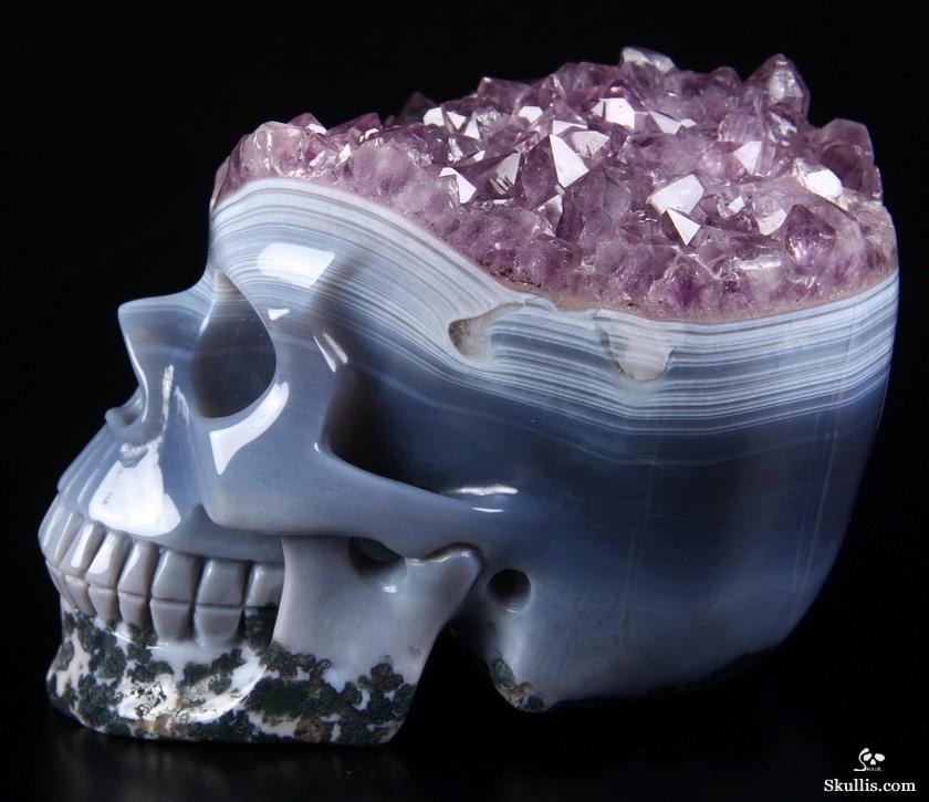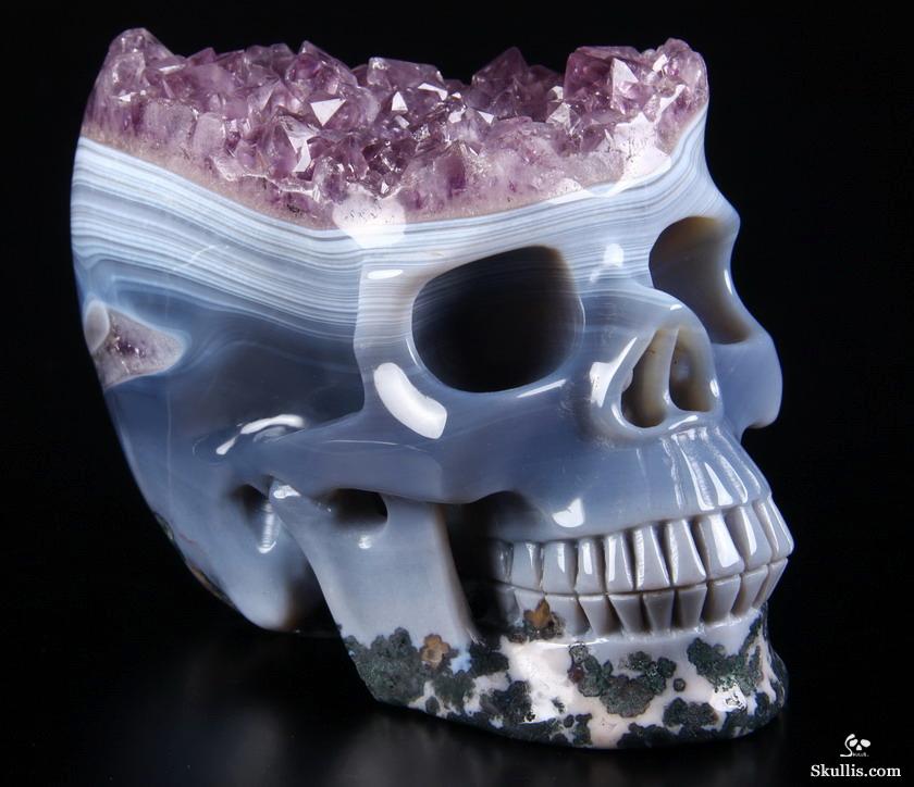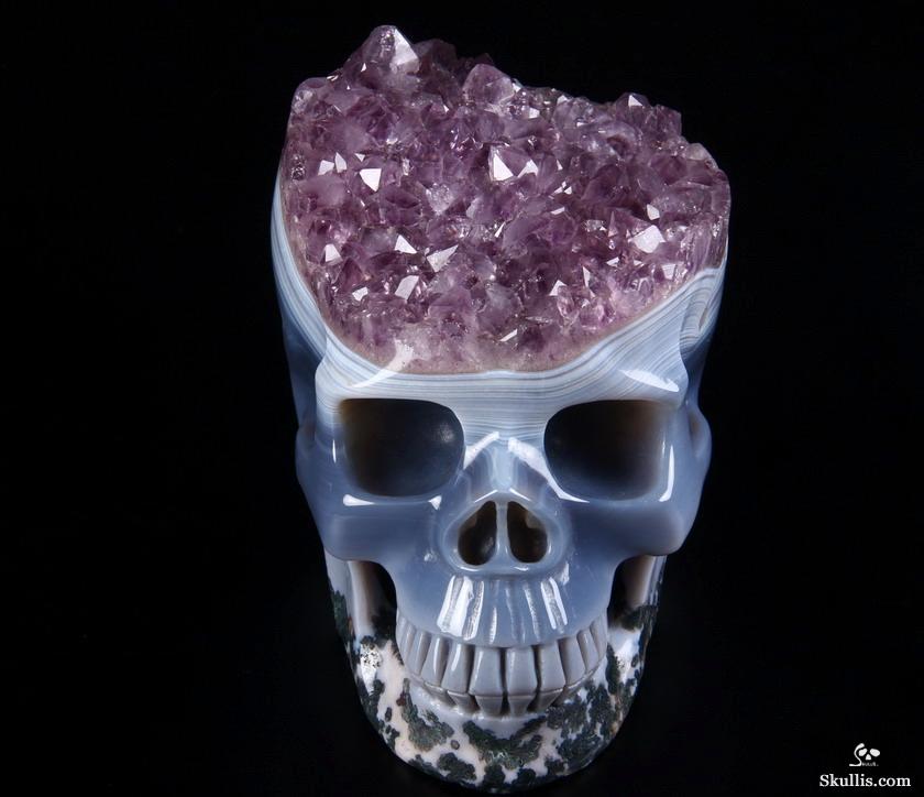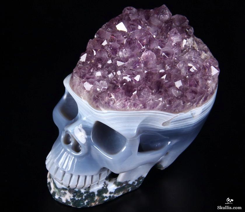 Amazing 5.9" Agate Amethyst Druse Carved Crystal Skull, Realistic