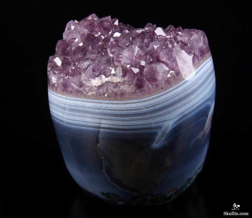3.1" Agate Amethyst Druse Hand Carved Crystal Skull Fine Art Sculpture, Crystal Healing