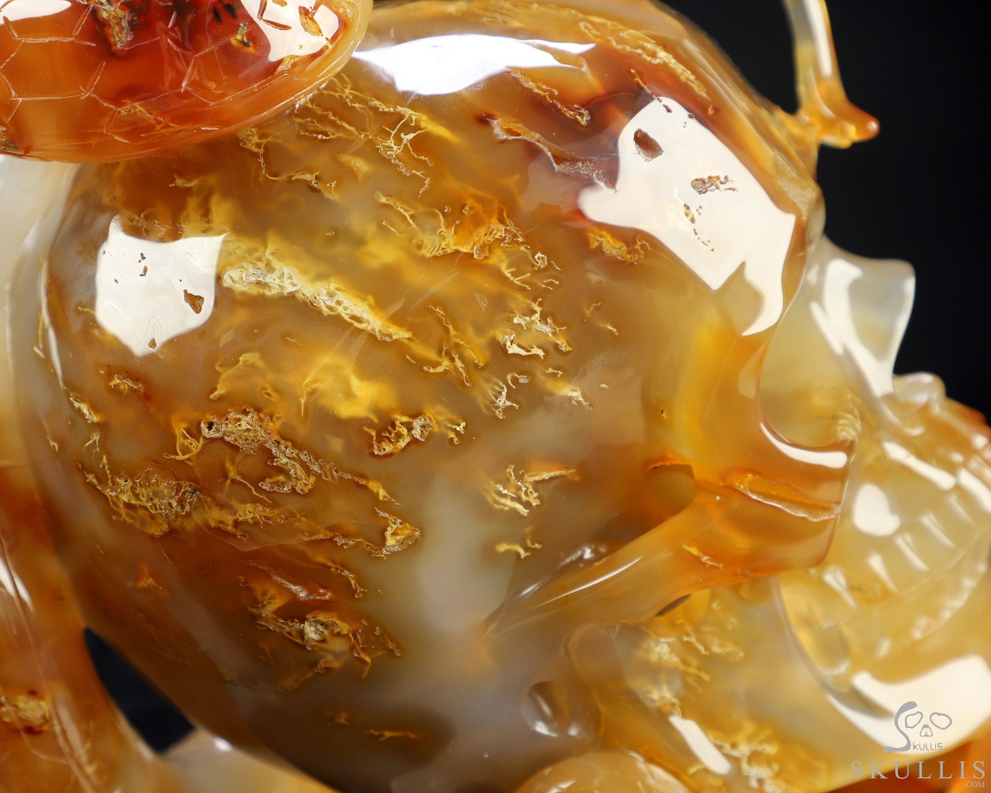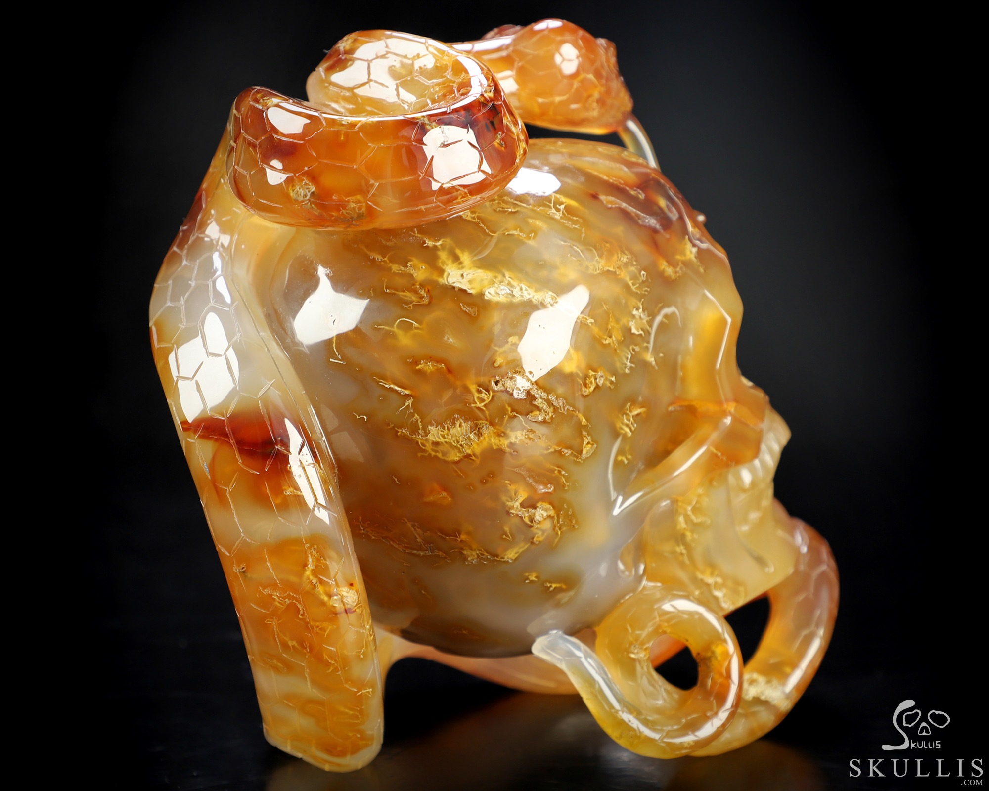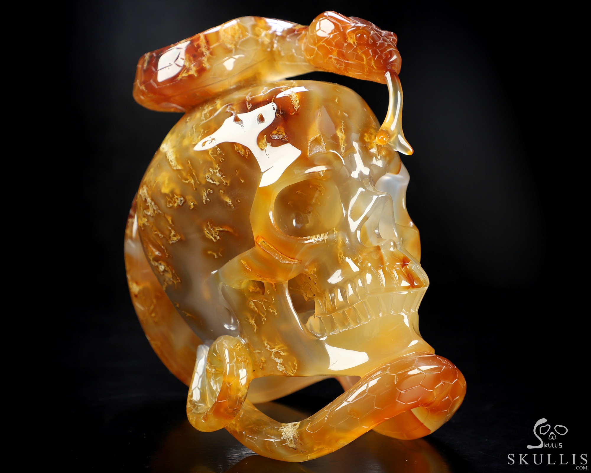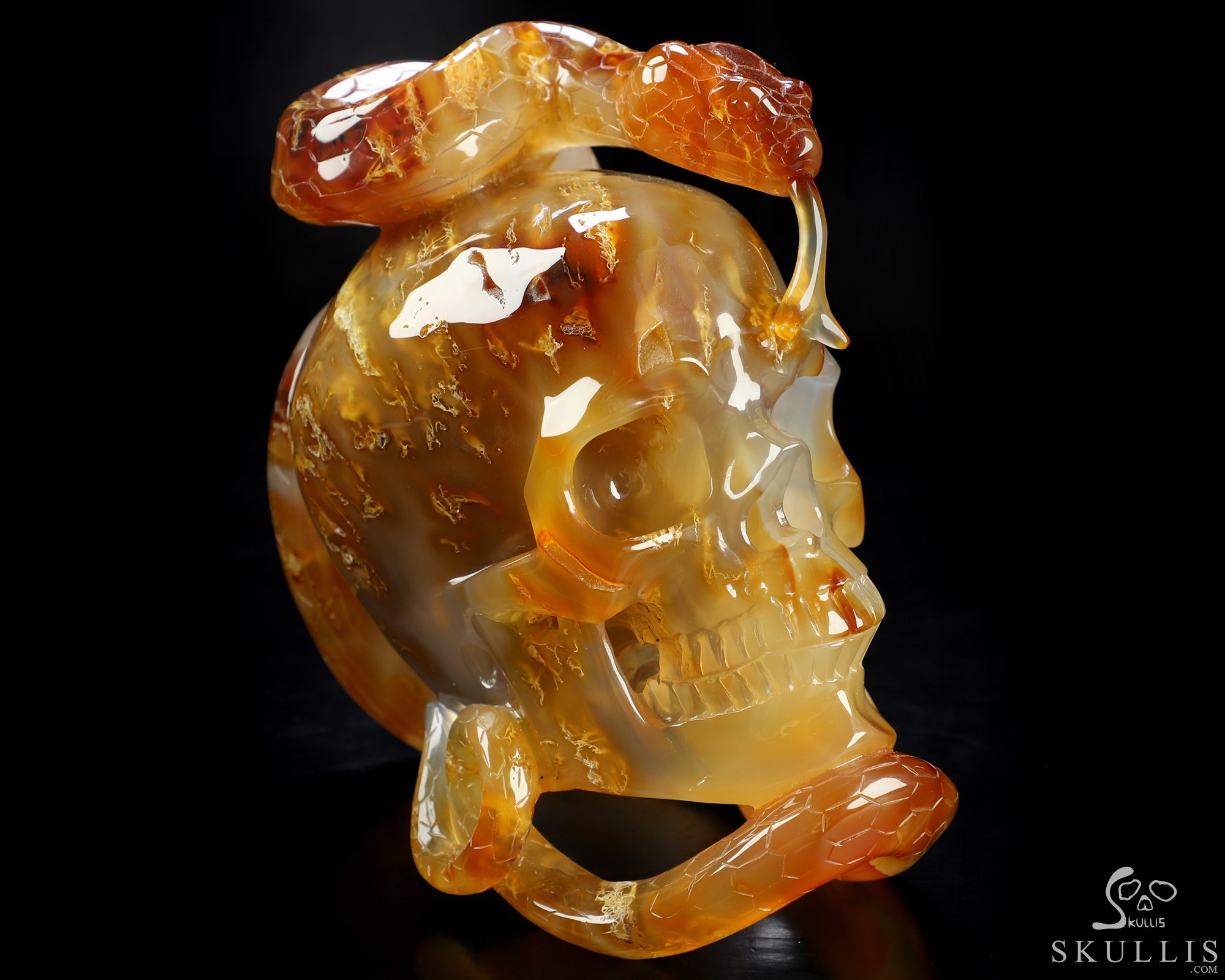 Amazing 6.7" Carnelian Hand Carved Crystal Skull and Snake Sculpture, Crystal Healing