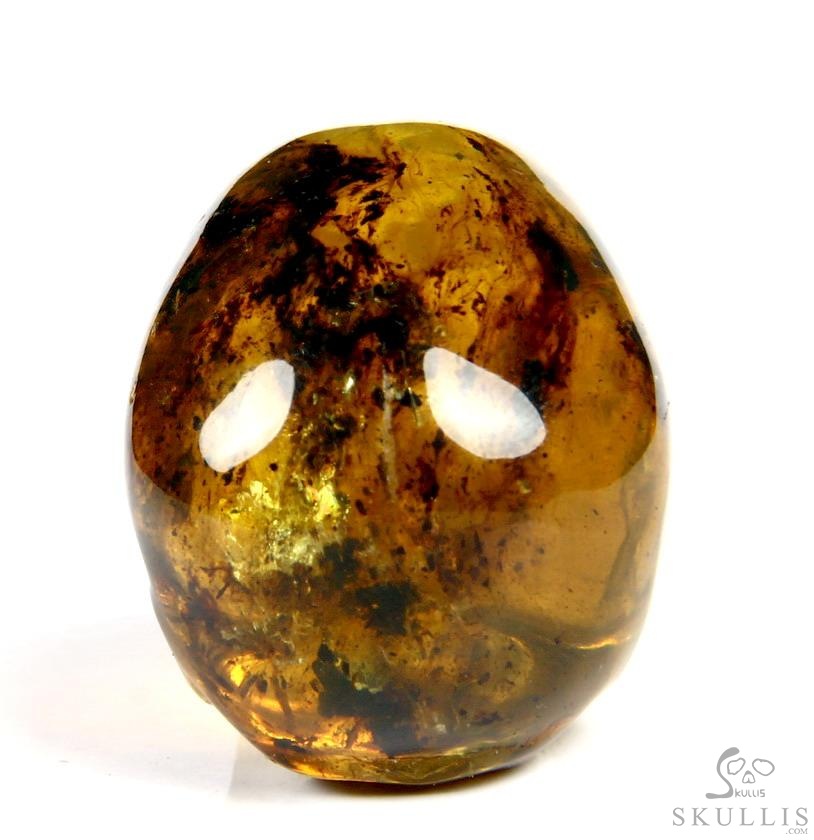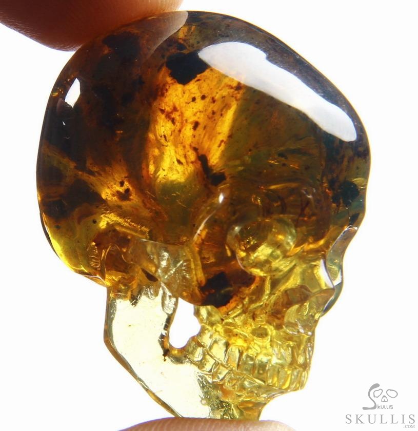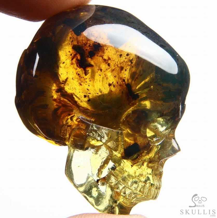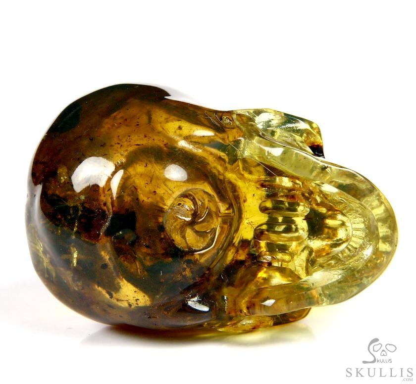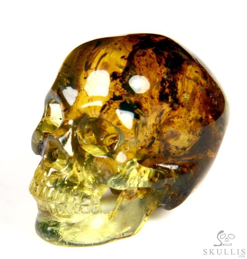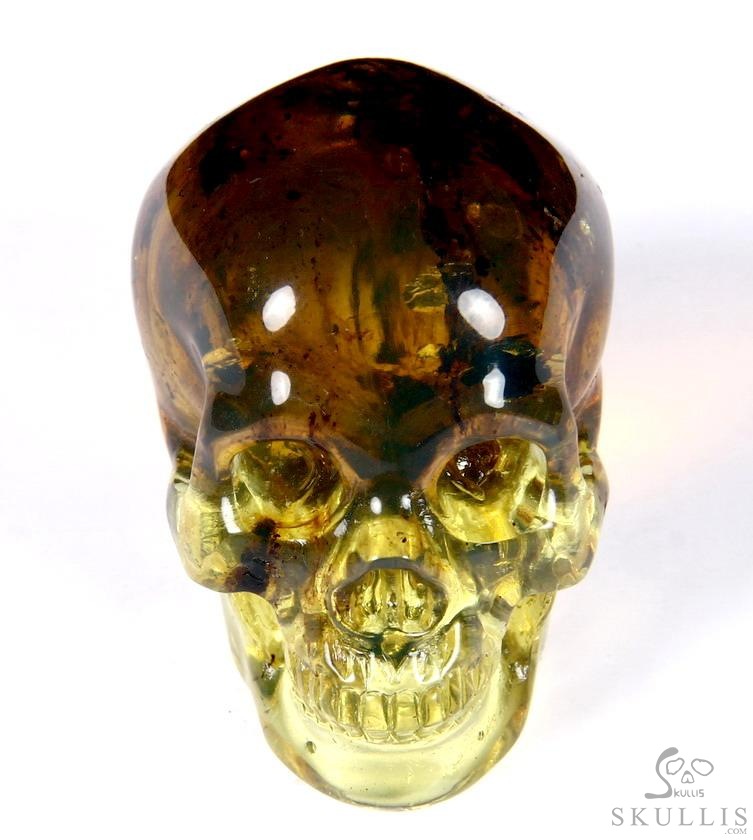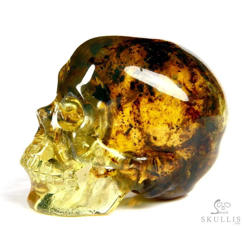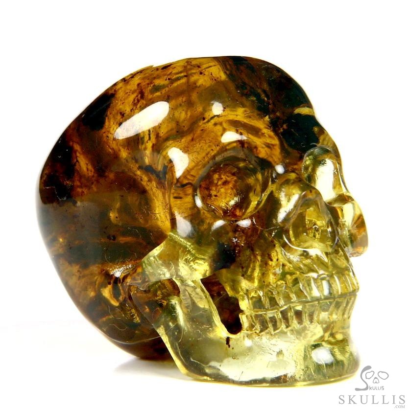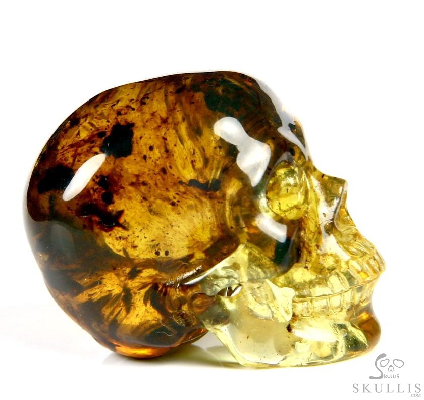 Golden Reminiscence - 5.1" Baltic Amber Carved Crystal Skull, Super Realistic, Crystal Healing