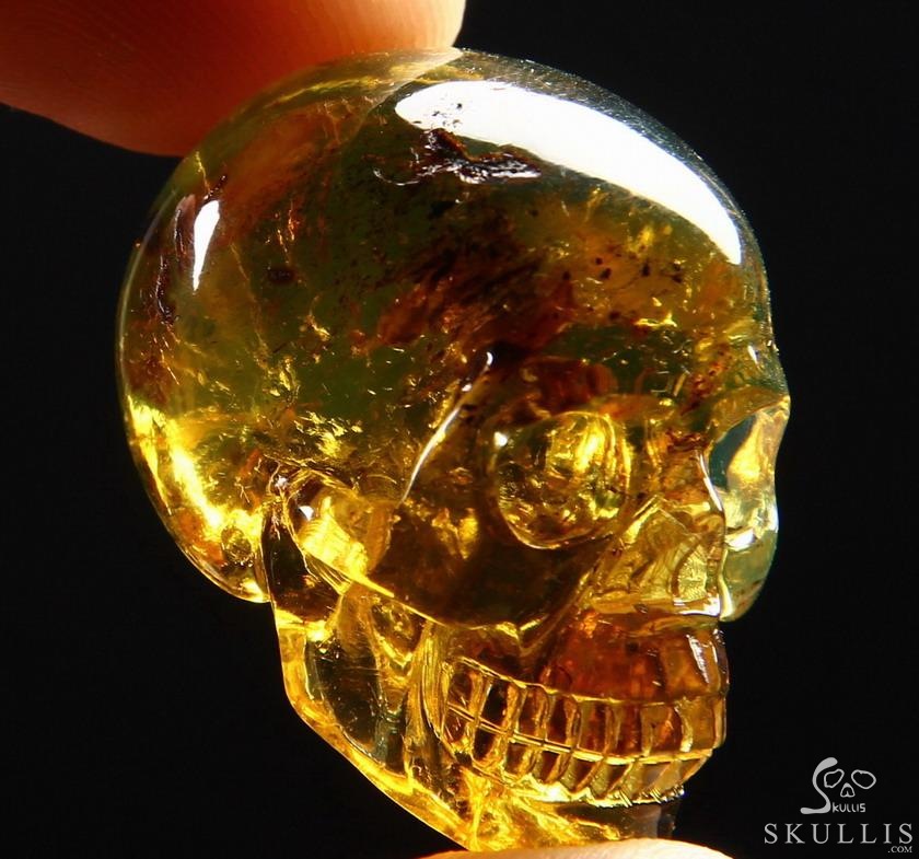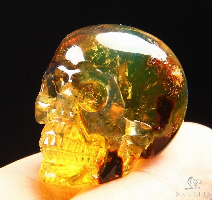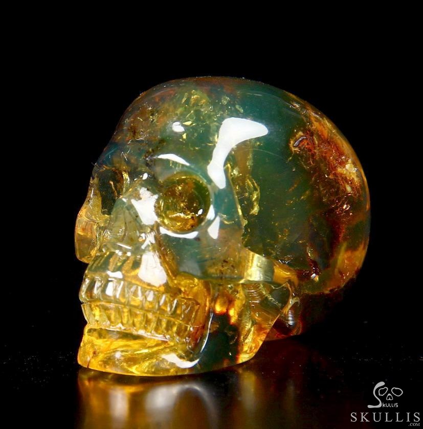 Amazing Gemstone Tiny 0.9" Dominican Blue Amber Carved Crystal Skull, Realistic