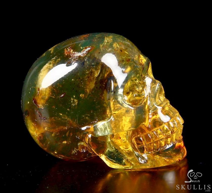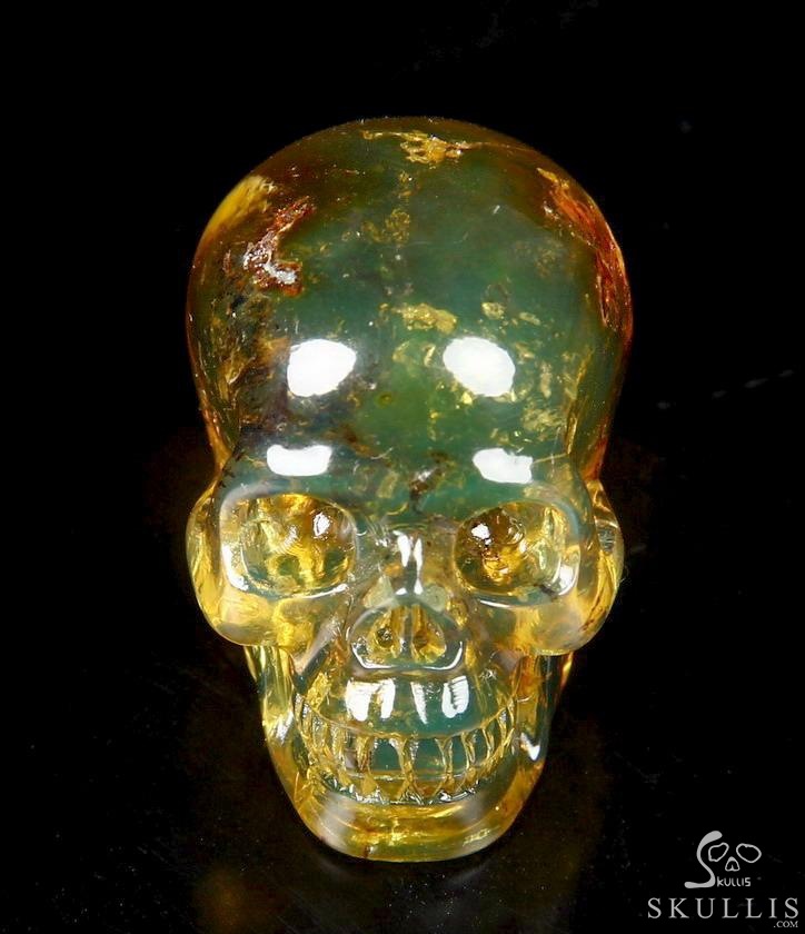 Gemstone 1.7" Dominican Blue Amber Carved Crystal Skull, Super Realistic