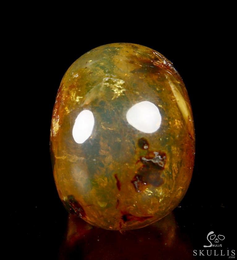 Gemstone 1.4" Dominican Blue Amber Carved Crystal Skull,Realistic, Crystal Healing