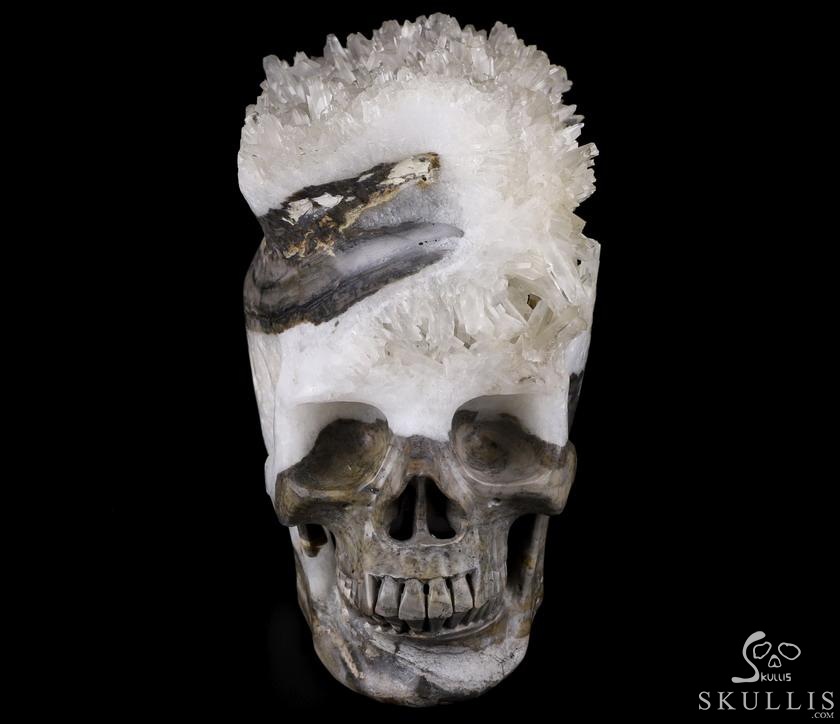 Amazing Giant 8.7" Quartz Rock Crystal Druse Carved Crystal Skull Sculpture, Super Realistic, Crystal Healing