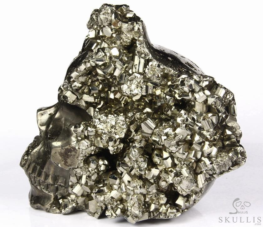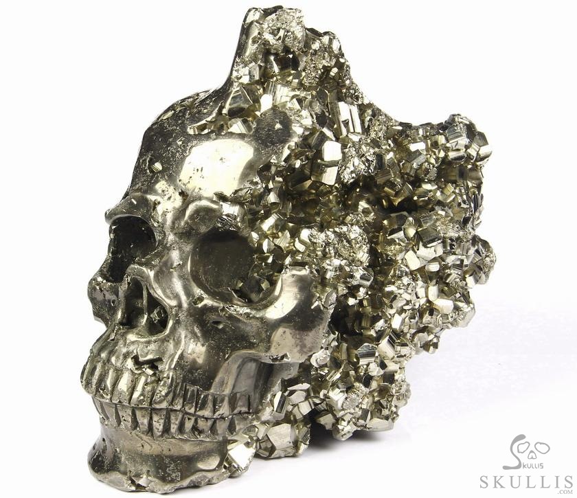 5.1" Pyrite Carved Crystal Guardian Skull, Crystal Healing