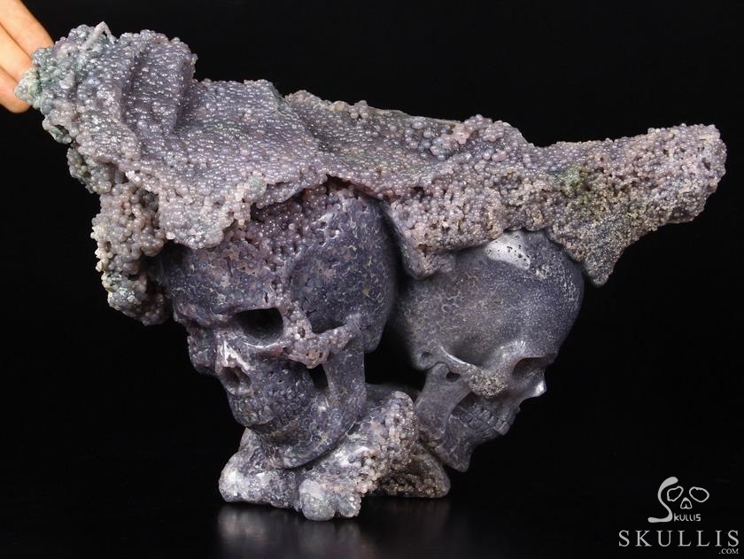Top Quality GEMSTONE Lifesized 6.9" Purple Grape Agate Carved Crystal Skull,Super Realistic, GEODE