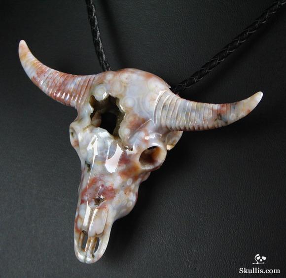 Necklace of 1.1" Ocean Jasper Hand Carved Crystal Skull Pendant, Skull Jewelry