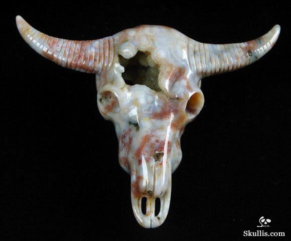 You are looking at a Ocean Jasper skull. The skull is 3.3 inches from left to right.