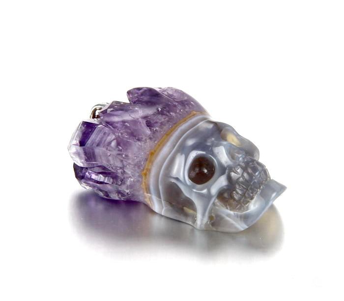 Amethyst Druse Agate Carved Crystal Skull Pendant With Sterling Silver