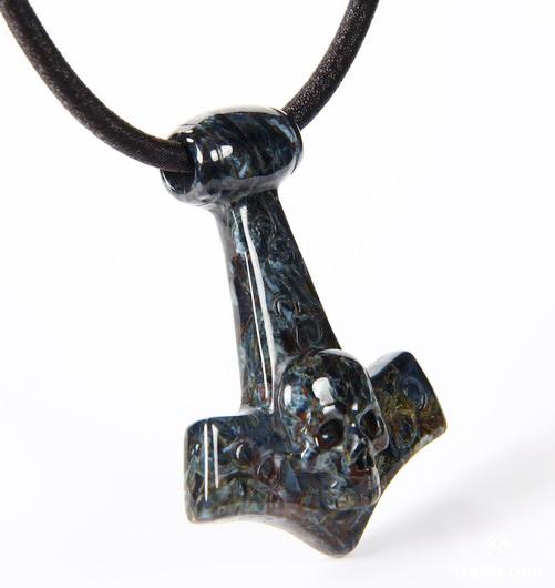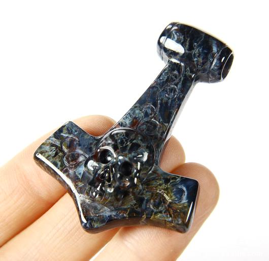 Blue, Gold & Red Pietersite Carved Crystal Skull Pendant