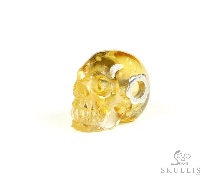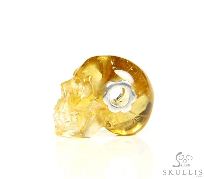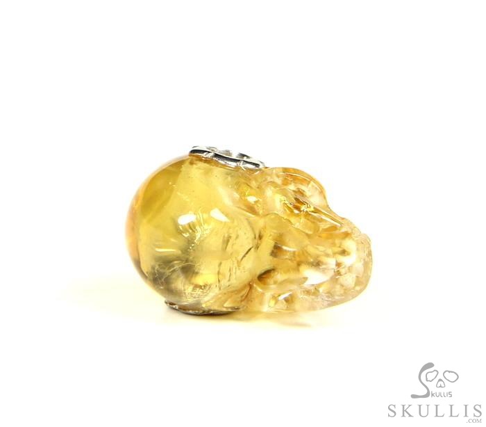 Clear Gemstone Citrine & 925 Sterling Silver Carved Crystal Skull Pendant with 925 Sterling Silver