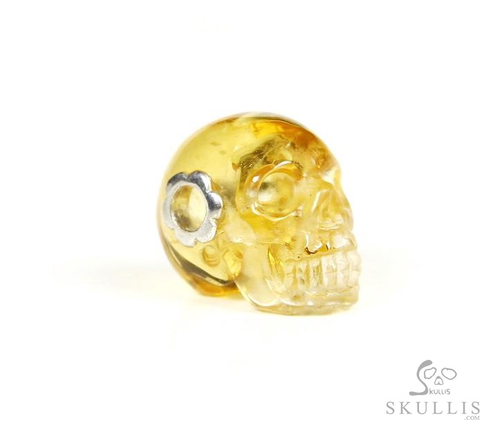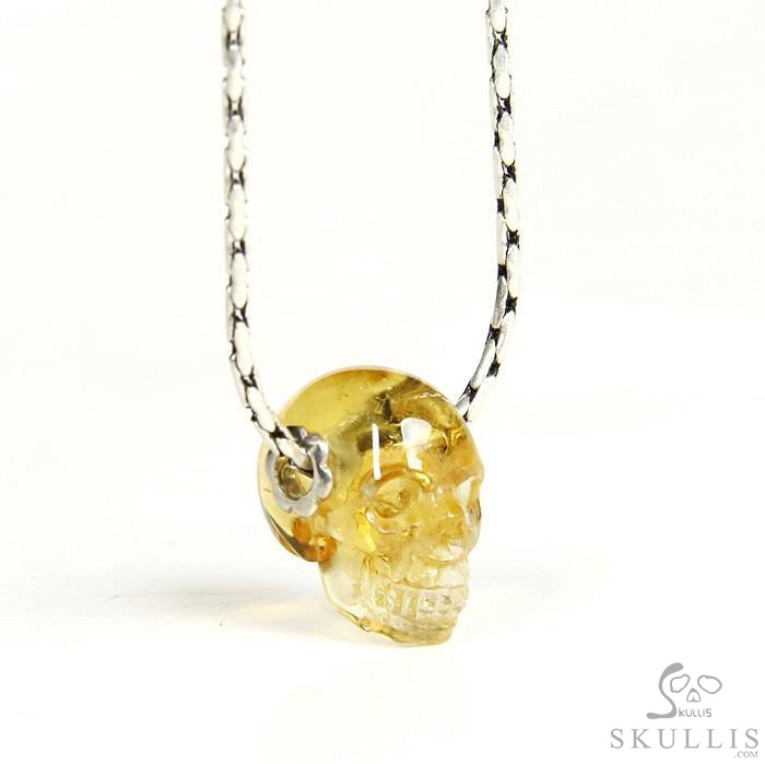 Merry Christmas! Citrine Gem Christmas Skull Pendant or Necklace with Bail in 925 Sterling Silver