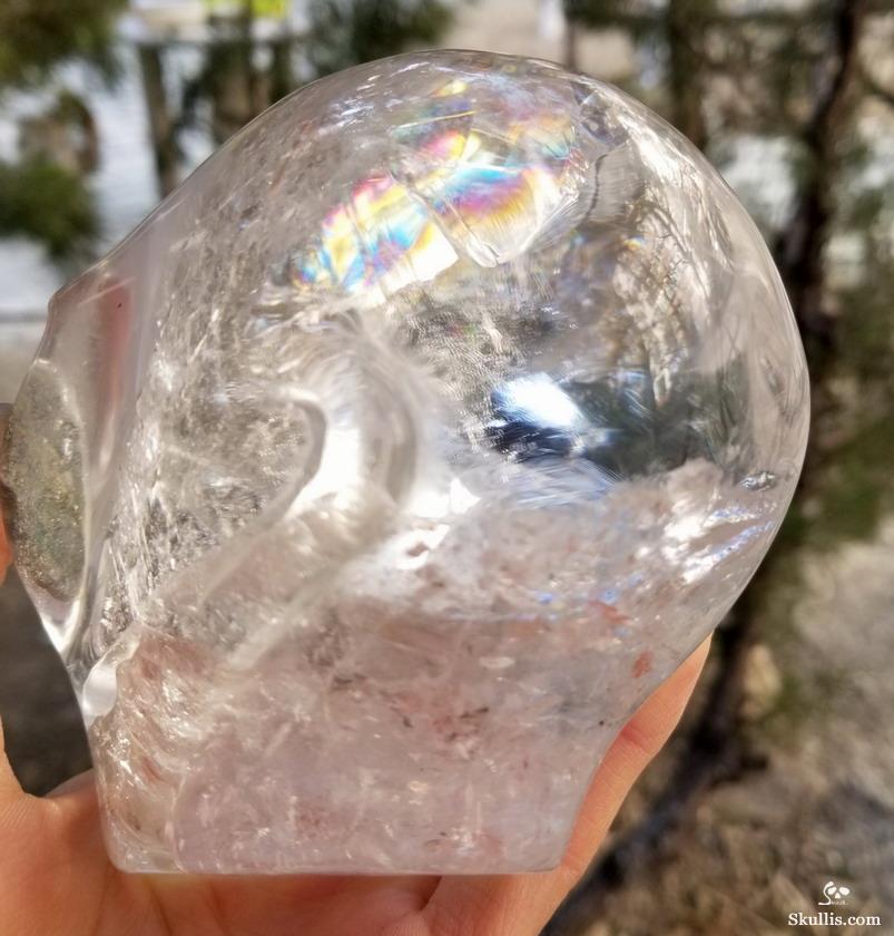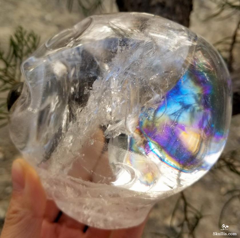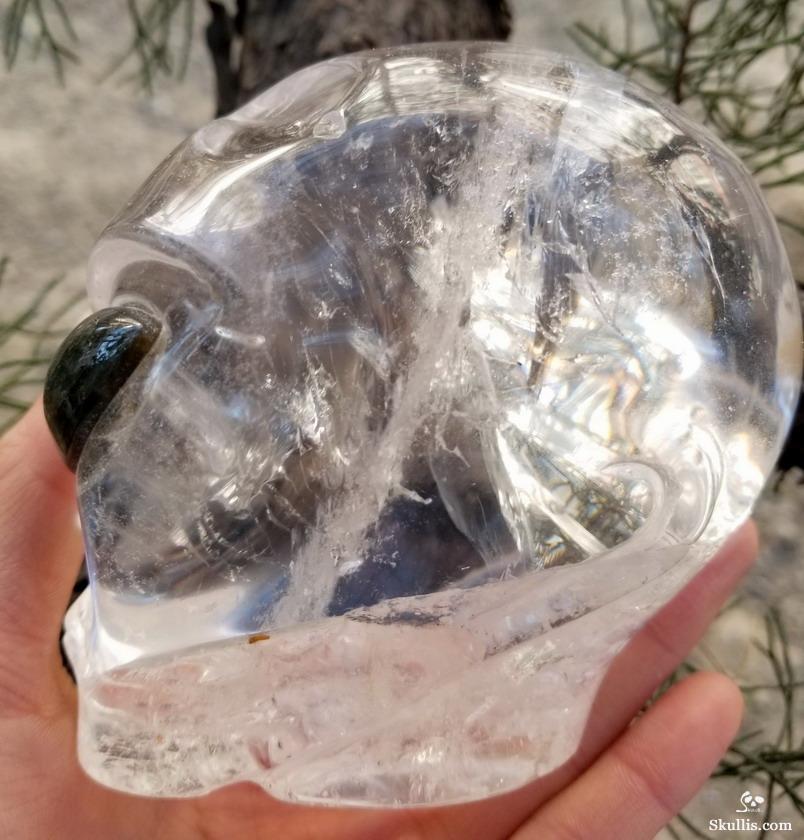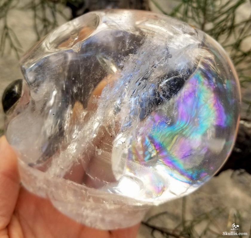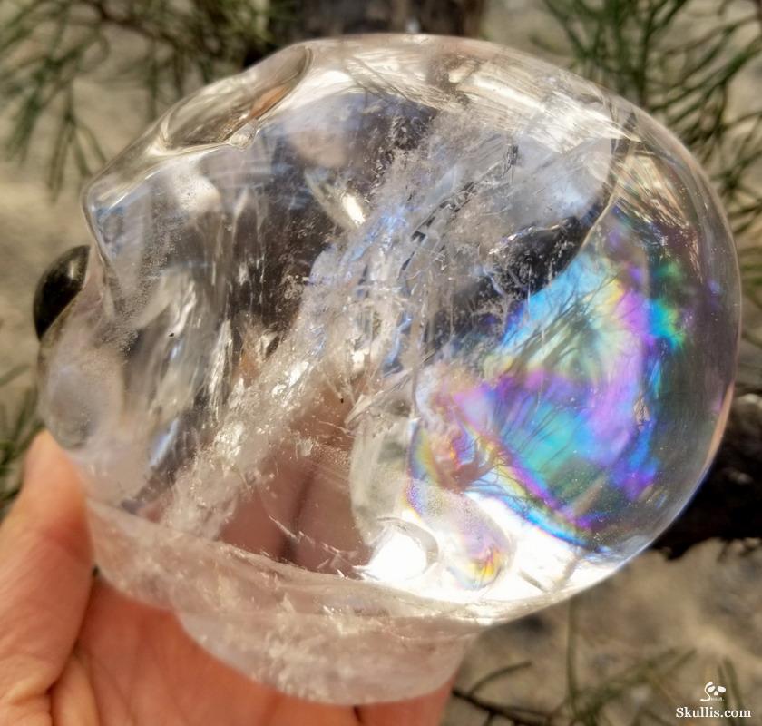 Rainbow Clear Huge 5.7" Quartz Rock Crystal Carved Crystal Skull, Super Realistic