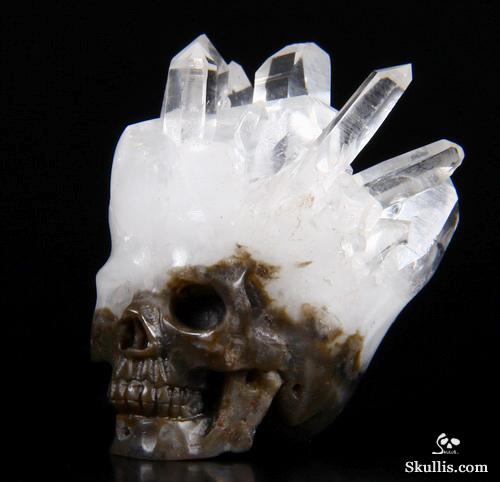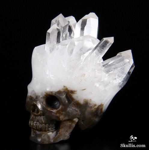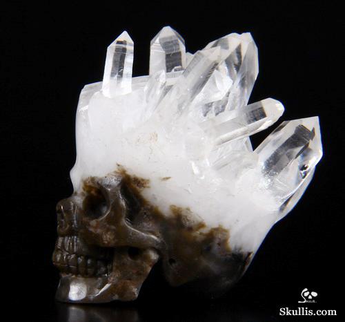 Crystal Cluster, 1.7" Quartz Rock Crystal Carved Crystal Druse Skull