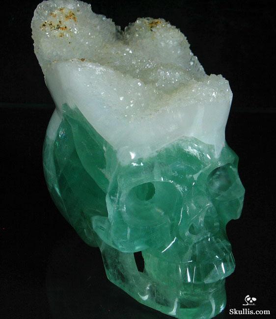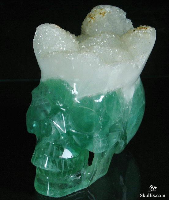 Druse 6.1" Green Fluorite Carved Crystal Skull, Realistic