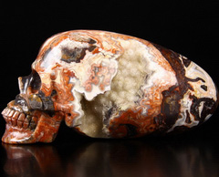 GEODE Huge 5.2" Crazy Lace Agate Carved Crystal Skull,Super Realistic, Crystal Healing