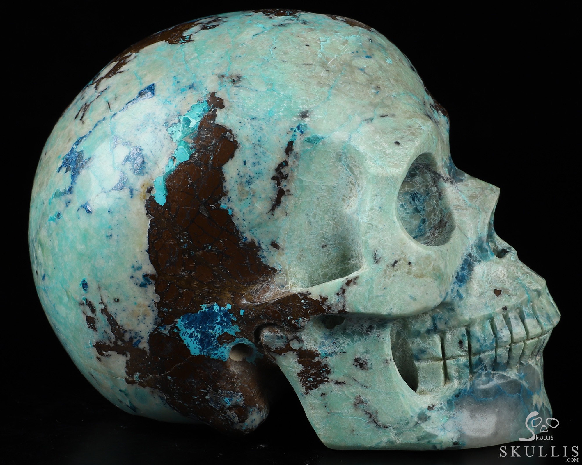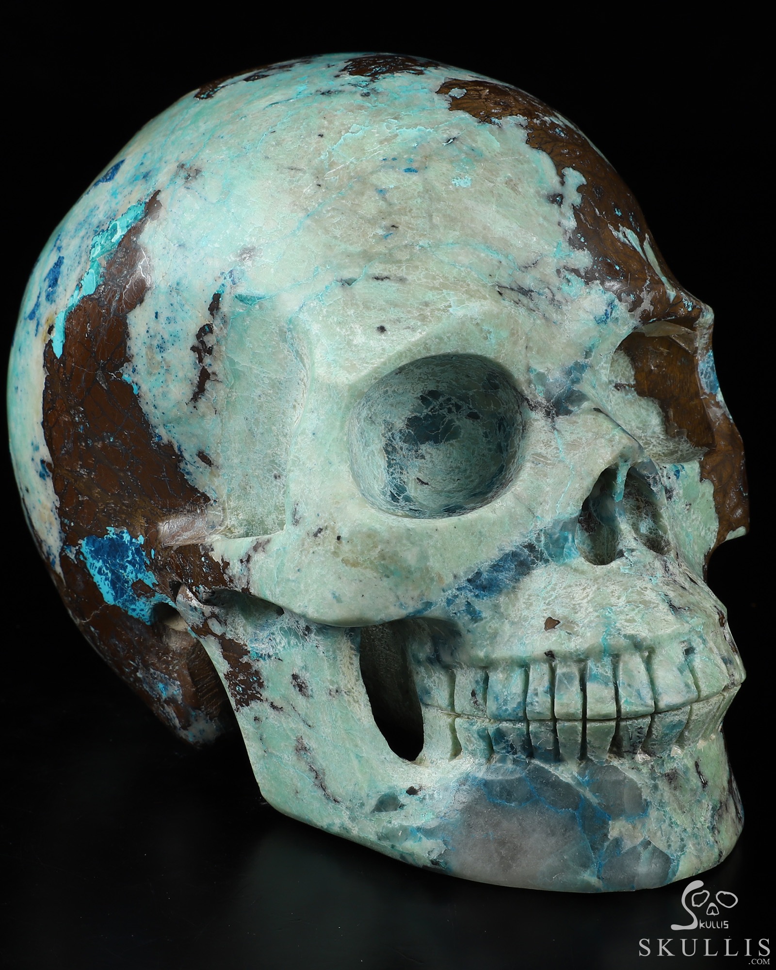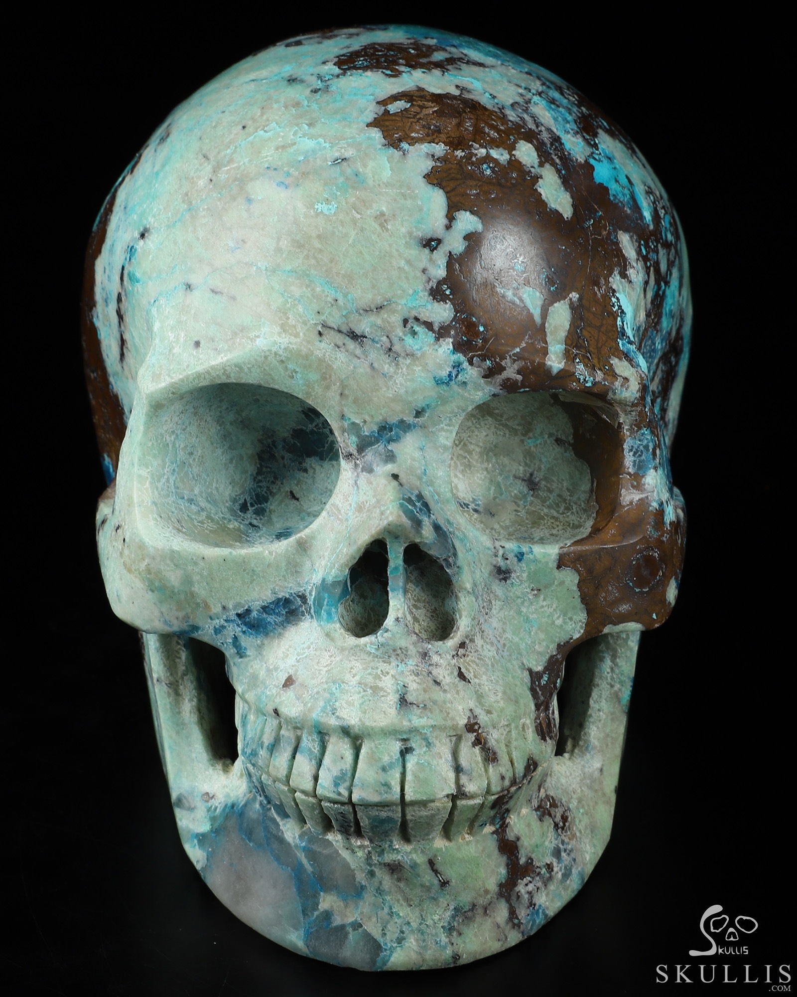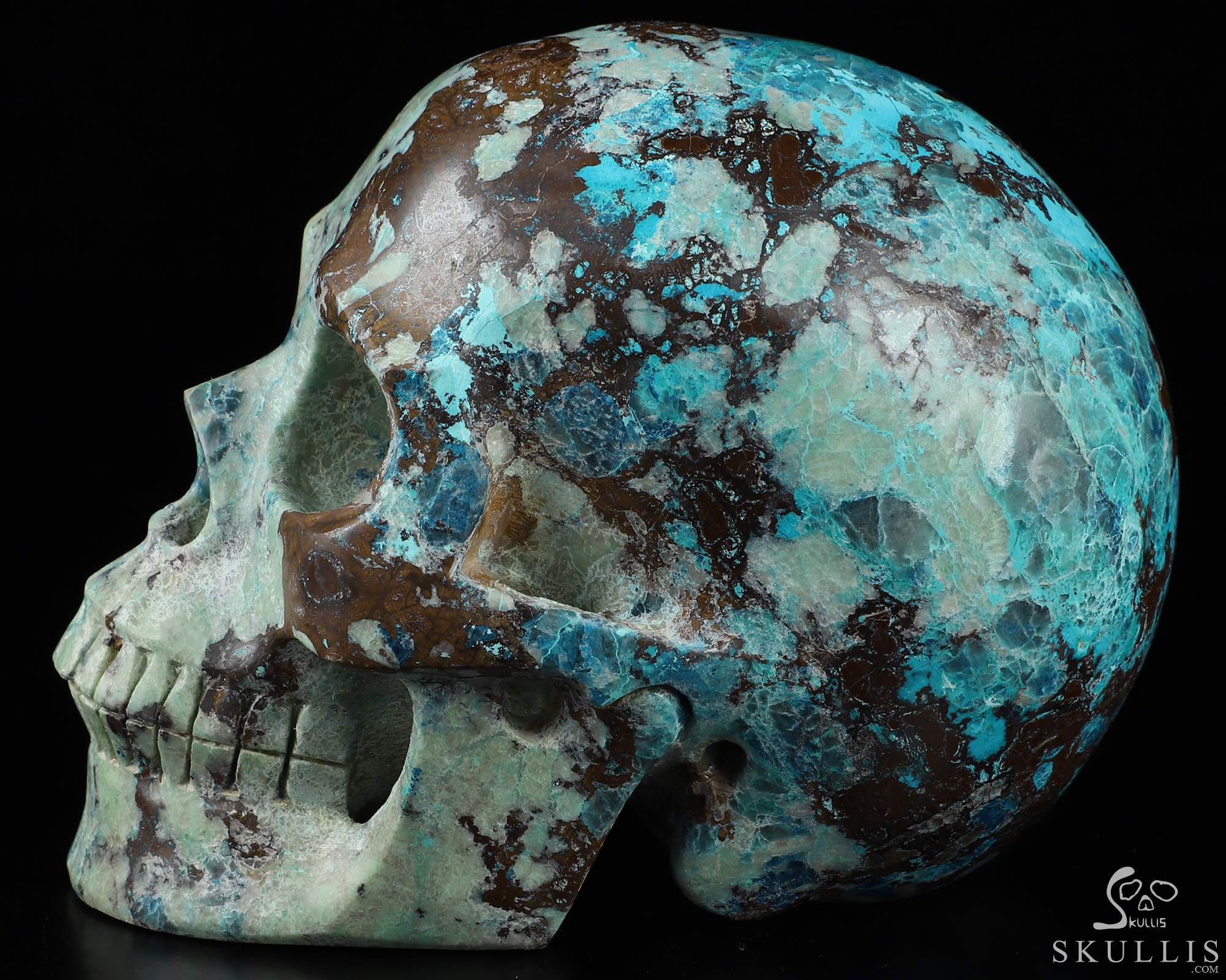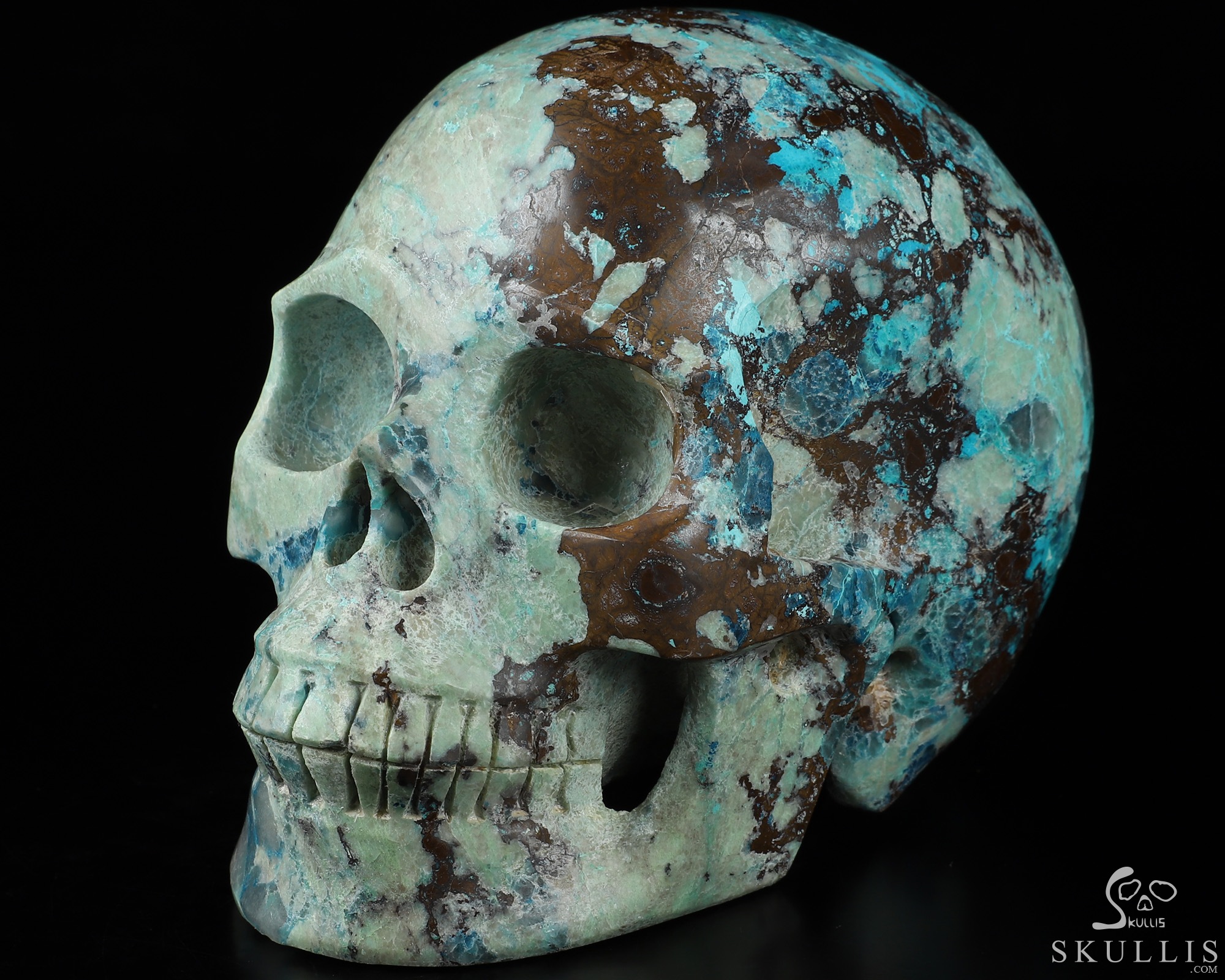 Gemstone 5.0" American Chrysocolla Carved Crystal Skull,Super Realistic, Crystal Healing